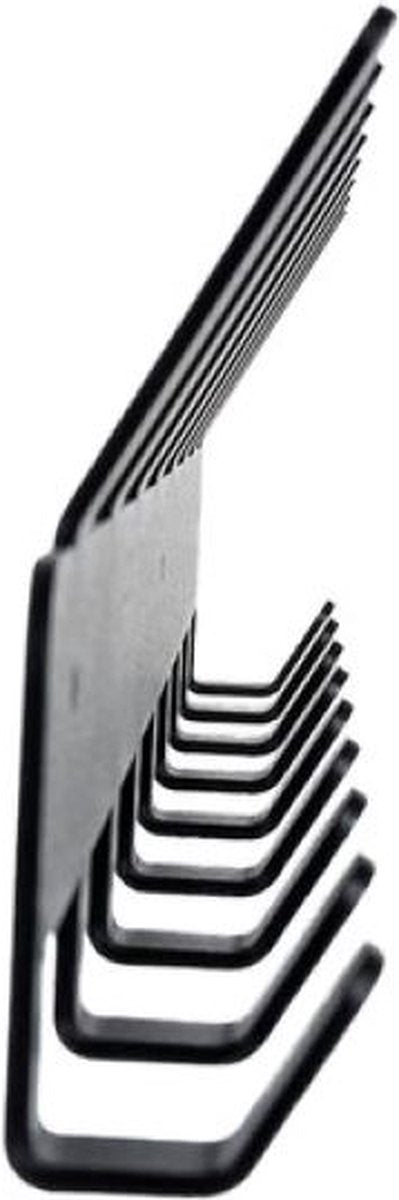 Met zijn strakke en moderne ontwerp zal deze muurhanger niet alleen zijn doel dienen, maar ook een element van stijl toevoegen aan uw inrichting. De hanger heeft 17 haken, waardoor er voldoende ruimte is om al uw spullen op te hangen, van jassen en hoeden tot tassen en sleutels. De haken zijn gemaakt van staal en zijn afgewerkt met een strakke zwarte poedercoating, zodat ze jarenlang meegaan.
