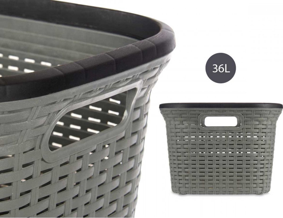 Eleganca Wasmand – Wasbox organizer – Kunststof – 53 x 36 x 25 cm – 36 Liter – Grijs/Zwart