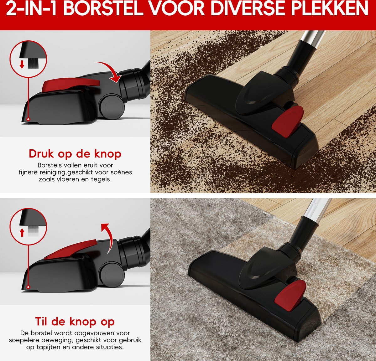 【2-in-1 vloerborstel reinigingsmodus】
