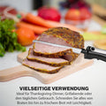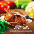 Het Elektrisch Mes beschikt over een 120 watt motor die zorgt voor voldoende kracht om door verschillende soorten voedsel te snijden. Het speciaal gekartelde roestvrijstalen mes is ontworpen om nauwkeurig en snel te snijden, zelfs door diepvriesproducten. Of je nu brood, vlees of groenten snijdt, dit elektrische mes kan het allemaal.