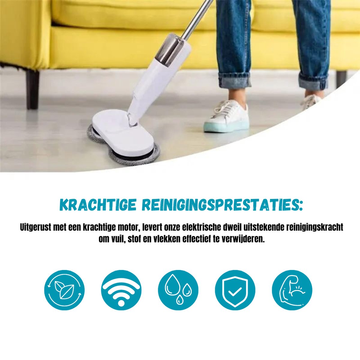 Uitgerust met een krachtige motor, levert onze elektrische dweil uitstekende reinigingskracht om vuil, stof en vlekken effectief te verwijderen. De roterende dweilkop zorgt voor grondige reiniging en laat uw vloeren er weer als nieuw uitzien.