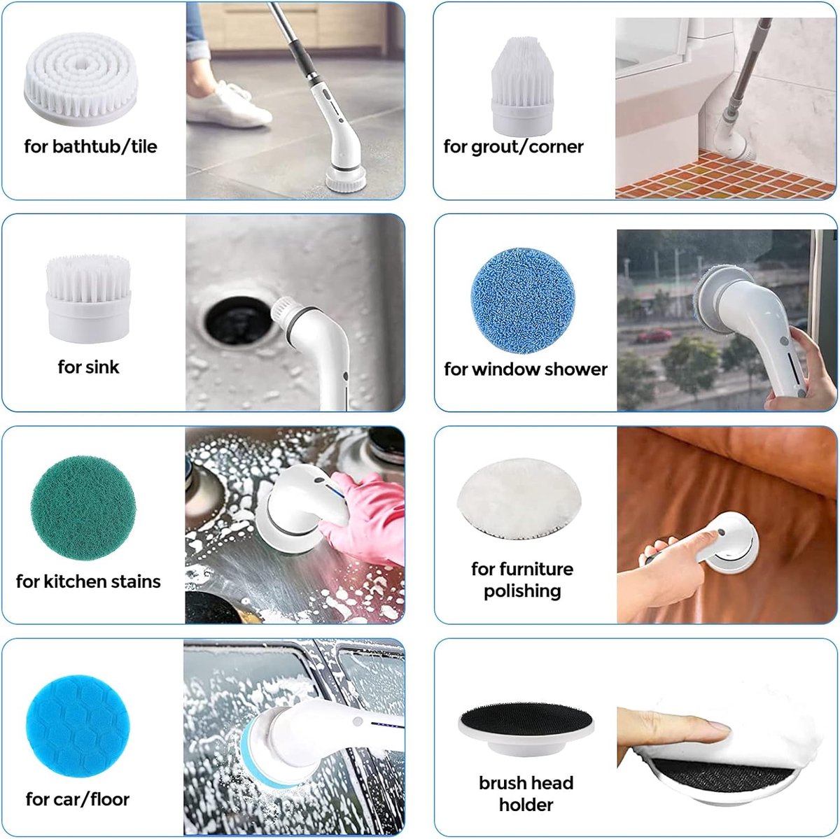 Deze veelzijdige en krachtige reinigingsborstel is ideaal voor een breed scala aan schoonmaakklussen, van badkamers tot keukens en meer. Dankzij de meegeleverde accessoires kunt u moeiteloos elk hoekje en gaatje bereiken en grondig reinigen zonder vermoeid te raken.