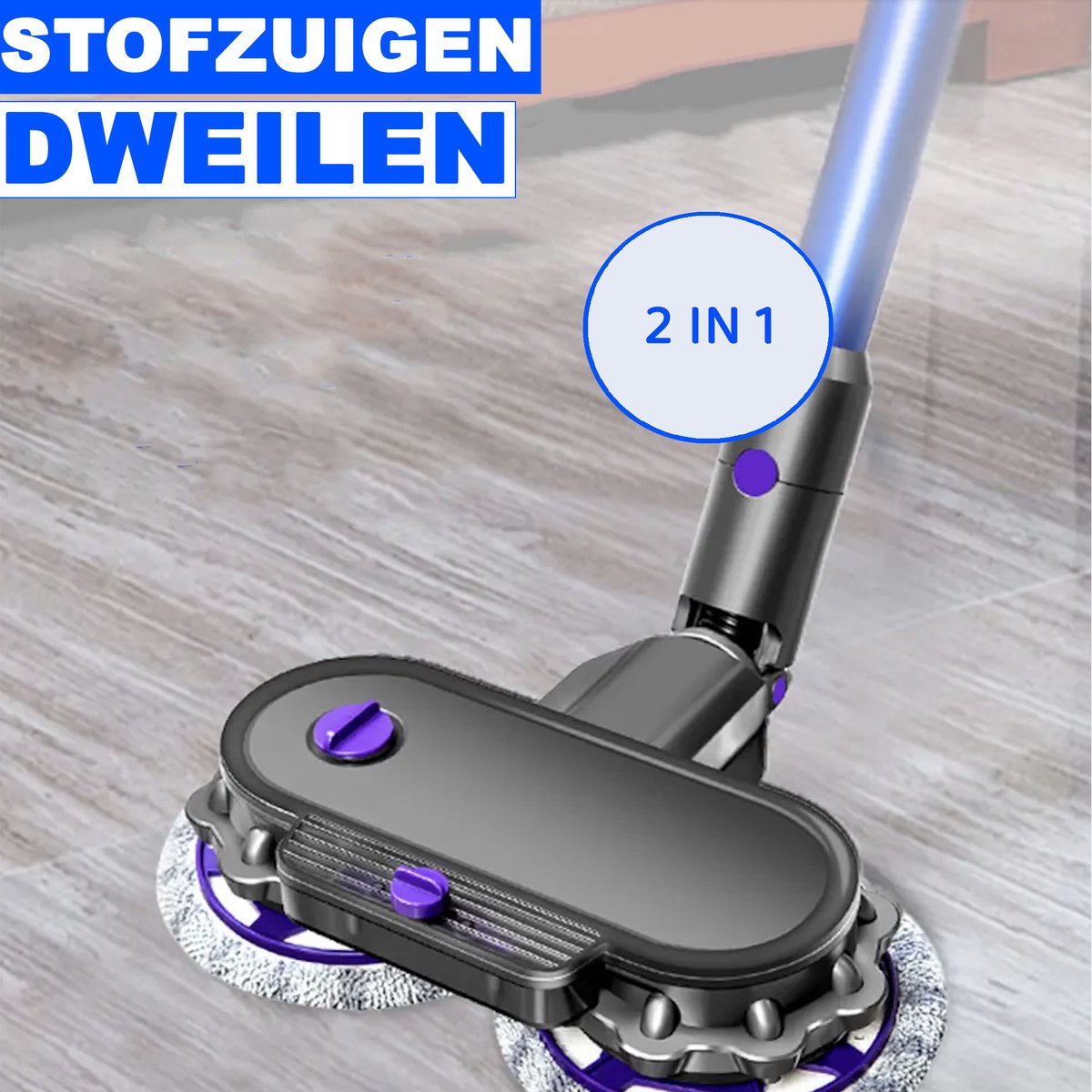 Elektrische Mop Dweil geschikt voor Dyson Steelstofzuiger - Mondstuk Accessoires Opzetstuk & Dweilsysteem voor V7 / V8 / V10 / V11 series - Vloerwisser en Vloermop - Nat & Droog - Inclusief 6 dweilmops