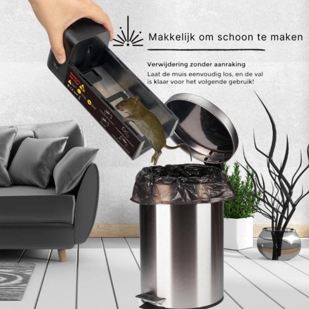Ons unieke zap-systeem garandeert 100% effectiviteit zonder de muis te laten lijden. De elektrische muizenval is ook een veiliger alternatief voor het gebruik van gif en chemicaliën en kan overal in huis of bedrijf worden geplaatst.