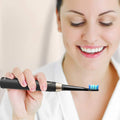 Naast de tandenborstel zelf, wordt dit product geleverd met drie verwisselbare opzetborstels, zodat u gemakkelijk een nieuwe opzetborstel kunt gebruiken. En dankzij het stijlvolle zwarte ontwerp past deze elektrische tandenborstel in elke badkamer.