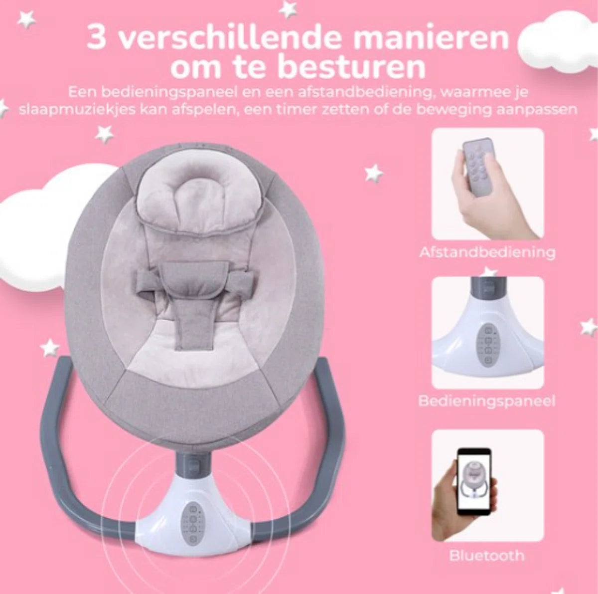 Elektrische Wipstoel - Bluetooth en Swing Opties - Babyschommel- Schommelstoel - Baby Swing - Baby wieg - Babyspullen - Kinderspullen
