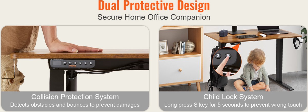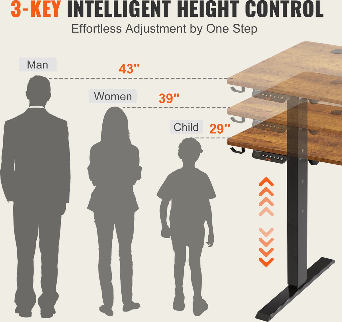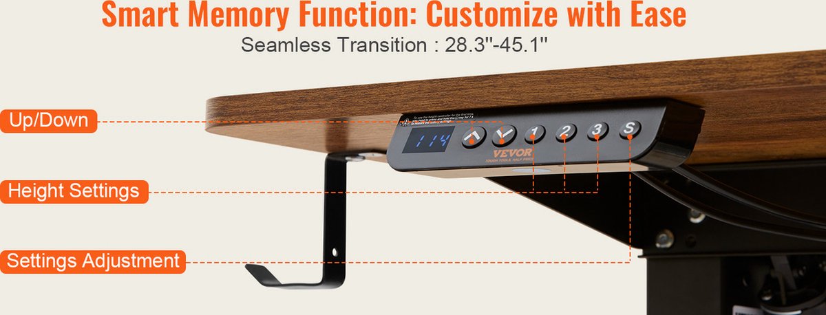 Ons bureau biedt langdurige betrouwbaarheid met zijn puur koperen motor, getest voor meer dan 50.000 cycli. Je kunt de hoogte soepel verstellen van 71.9 cm tot 114.6 cm, ideaal voor zowel zitten als staan. Met drie geheugenvoorinstellingen pas je het bureau moeiteloos aan jouw favoriete werkhoogtes aan.