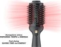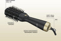 • Aangepaste Luchtstroom: Kies uit twee snelheden en temperaturen, waardoor deze föhnborstel geschikt is voor diverse haartypes en stylingbehoeften. Gebruik de koude lucht blaasfunctie voor een verfijnde afwerking.