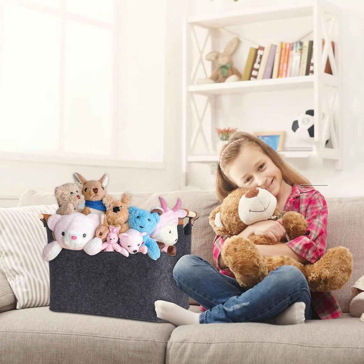 Equivera houtmand voor haardhout XL, vilten mand haardhout XXL, 45 x 32 x 40 cm, brandhoutkist met extra dik vilt en versterkte handgreep, voor haardhout, hout, kranten, kleding