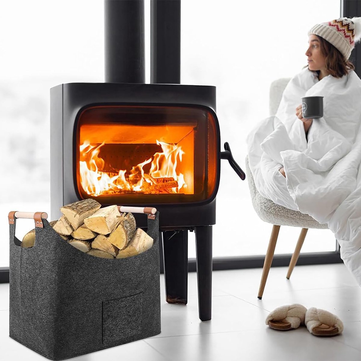 Laadgewicht: 36 kg: de houten mand voor haardhout bestaat uit hoogwaardig vilt, dat robuust, duurzaam en slijtvast is en lang kan worden gebruikt. Goede hechting, niet gemakkelijk los te maken, kan brandhout goed opslaan. Houdt 36 kg en is perfect geschikt voor het bewaren van hout en voor het organiseren van je huis. 【Grote inhoud – 57 l】Deze robuuste opbergtas voor brandhout meet 45 x 32 x 40 cm en heeft een inhoud van 57 liter. Maakt het opbergen van meer brandhout mogelijk voor open haarden, camping, barbecue-avonden en meer. Opvouwbaar en draagbaar: de vilten mand voor haardhout kan bij niet-gebruik tot een kleine rechthoek worden opgevouwen, waardoor je maximale ruimte bespaart. Als je de brandhoutmand niet hoeft te gebruiken, hoef je alleen de houten stokjes eruit te halen beide zijden en vouw je de mand voor haardhout langs de vouw. Je kunt hem eenvoudig en comfortabel opbergen.