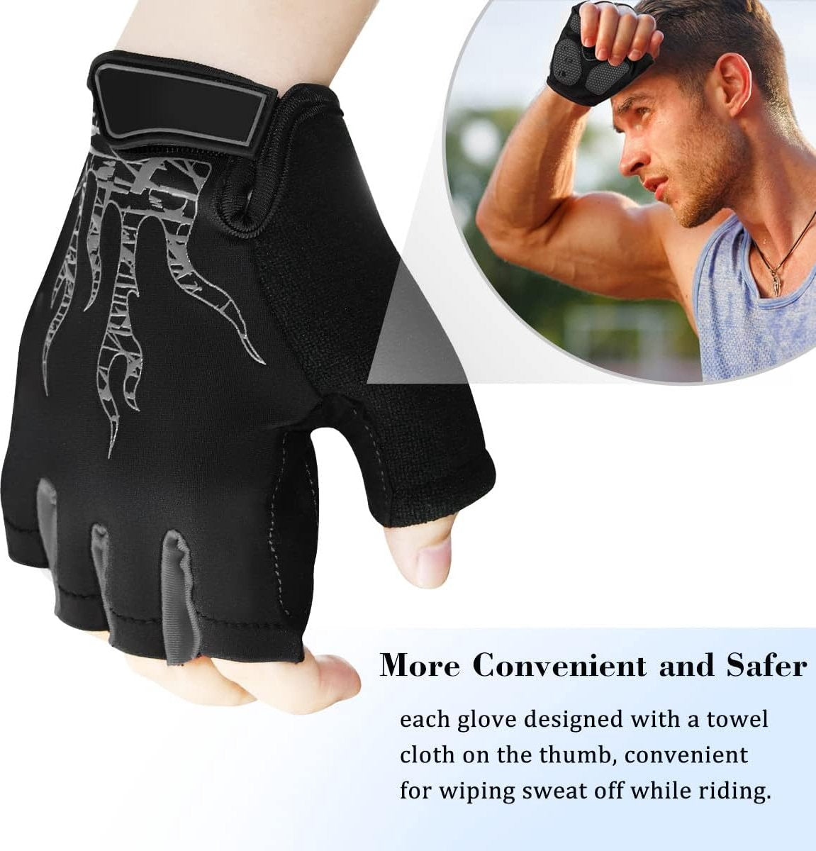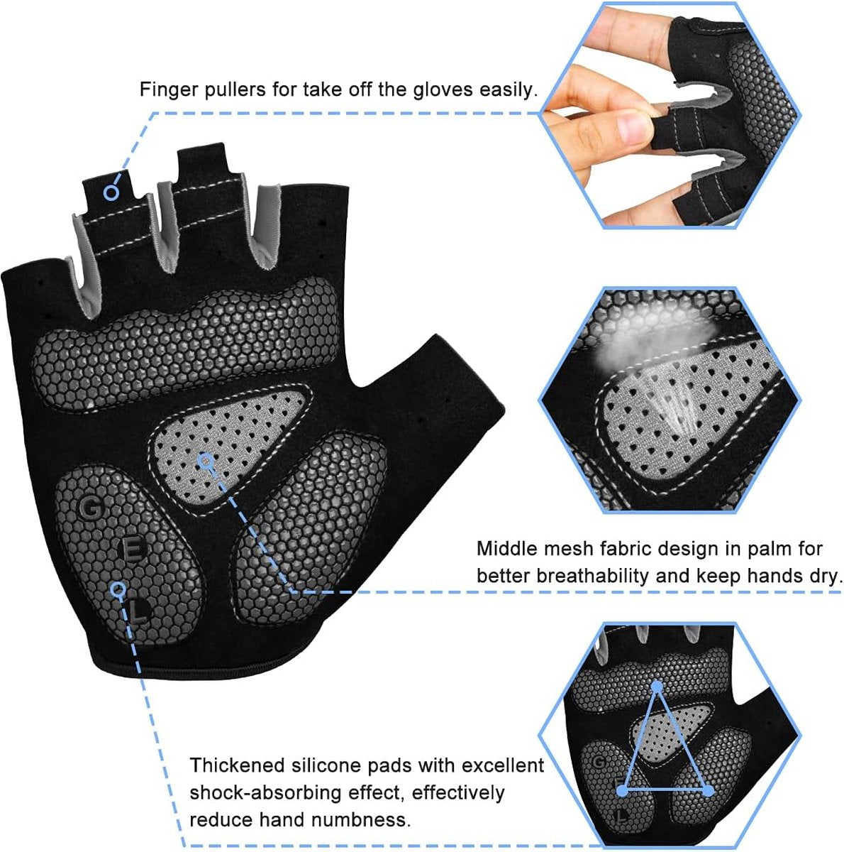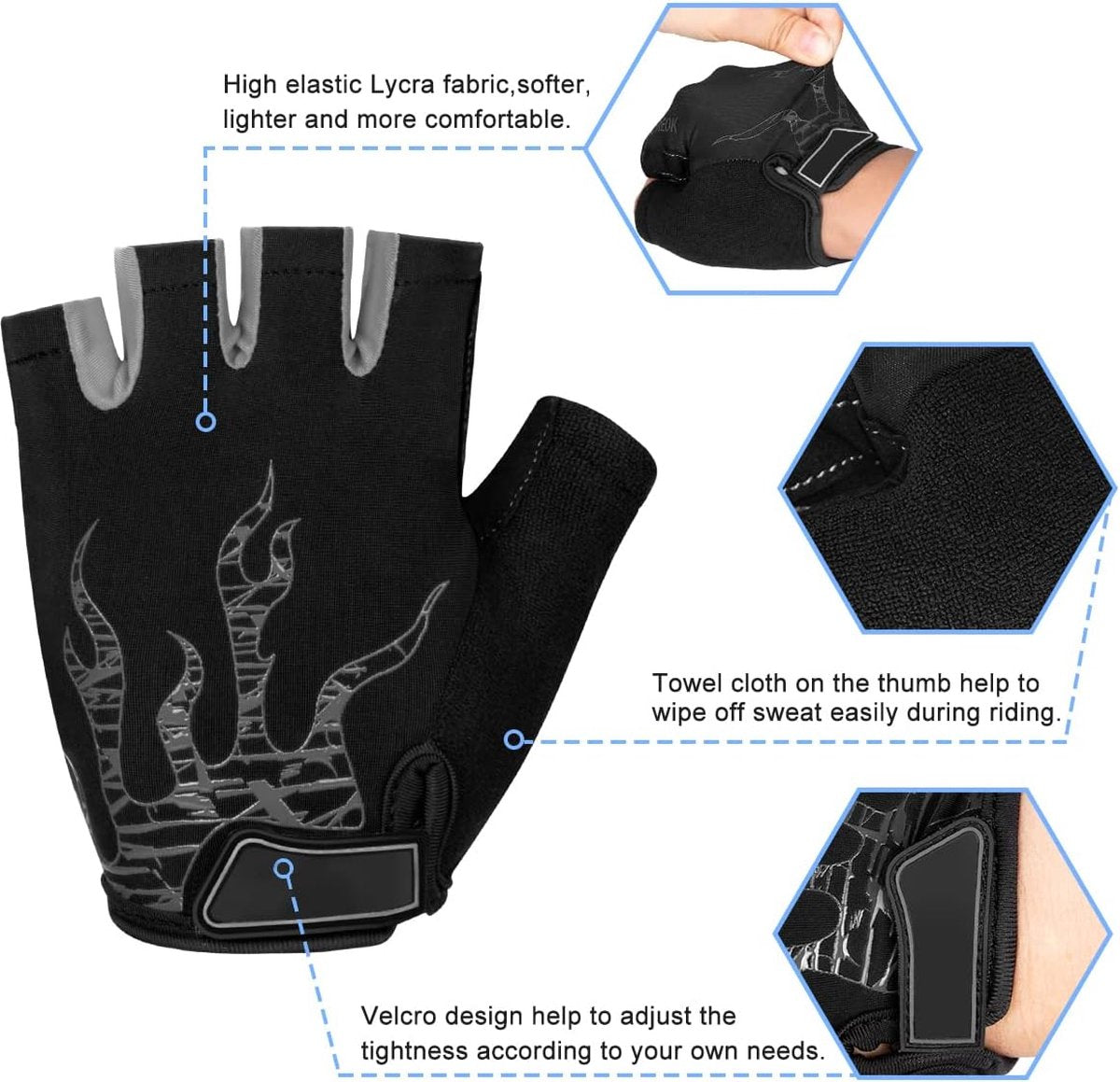 - Flexibel en ademend: deze stijlvolle fietshandschoenen voor heren en dames zijn een uitstekende keuze voor korte vingerhandschoenen voor racefietsen, vrijetijds- en MTB-rijders. Het ademende lycra-weefsel bestaat uit een vochtafvoerende stretchlycra op de achterkant en houdt je handen goed geventileerd en fris. Ventilatiegaten aan vingers en duim toegevoegd om oververhitting te voorkomen.
