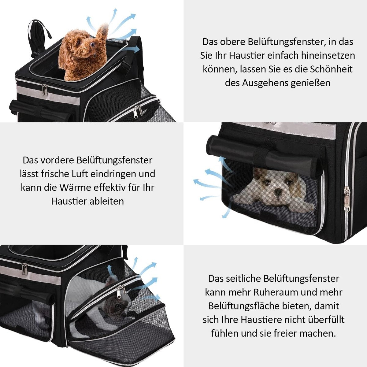 Deze huisdierenrugzak heeft drie openingen, zodat je huisdier zijn hoofd kan uitsteken en rondkijken. Het biedt ook de mogelijkheid om je hond te voeren of ermee te spelen zonder de rugzak af te doen. De uitneembare fleece pads zorgen ervoor dat je huisdier in de winter warm blijft.