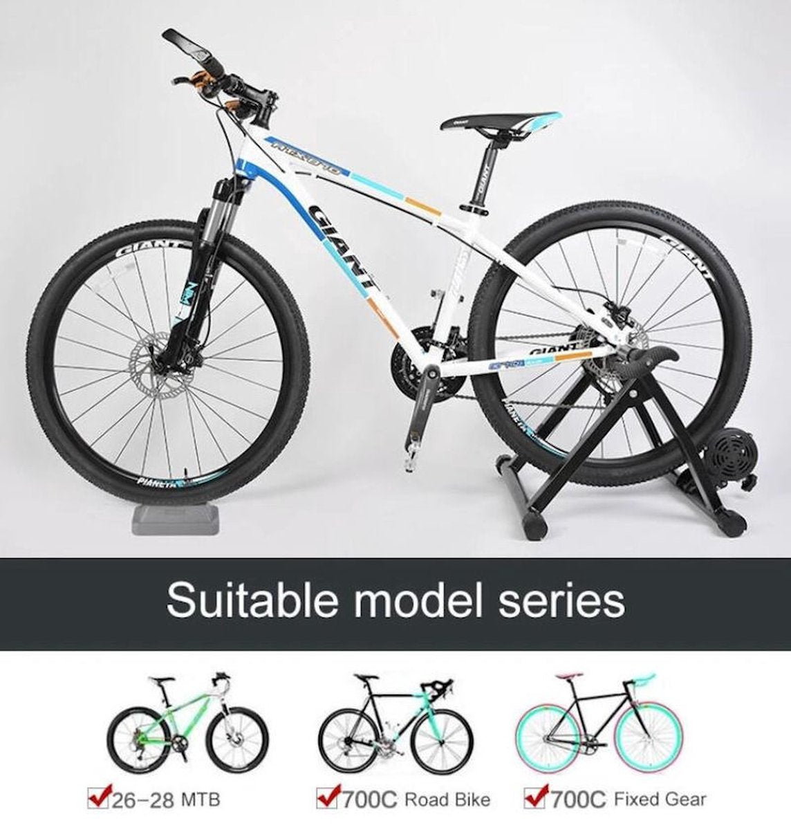 De fietstrainer past voor elke fiets, inclusief race- en mountainbikes met een 26 - 28 of 700C wiel.