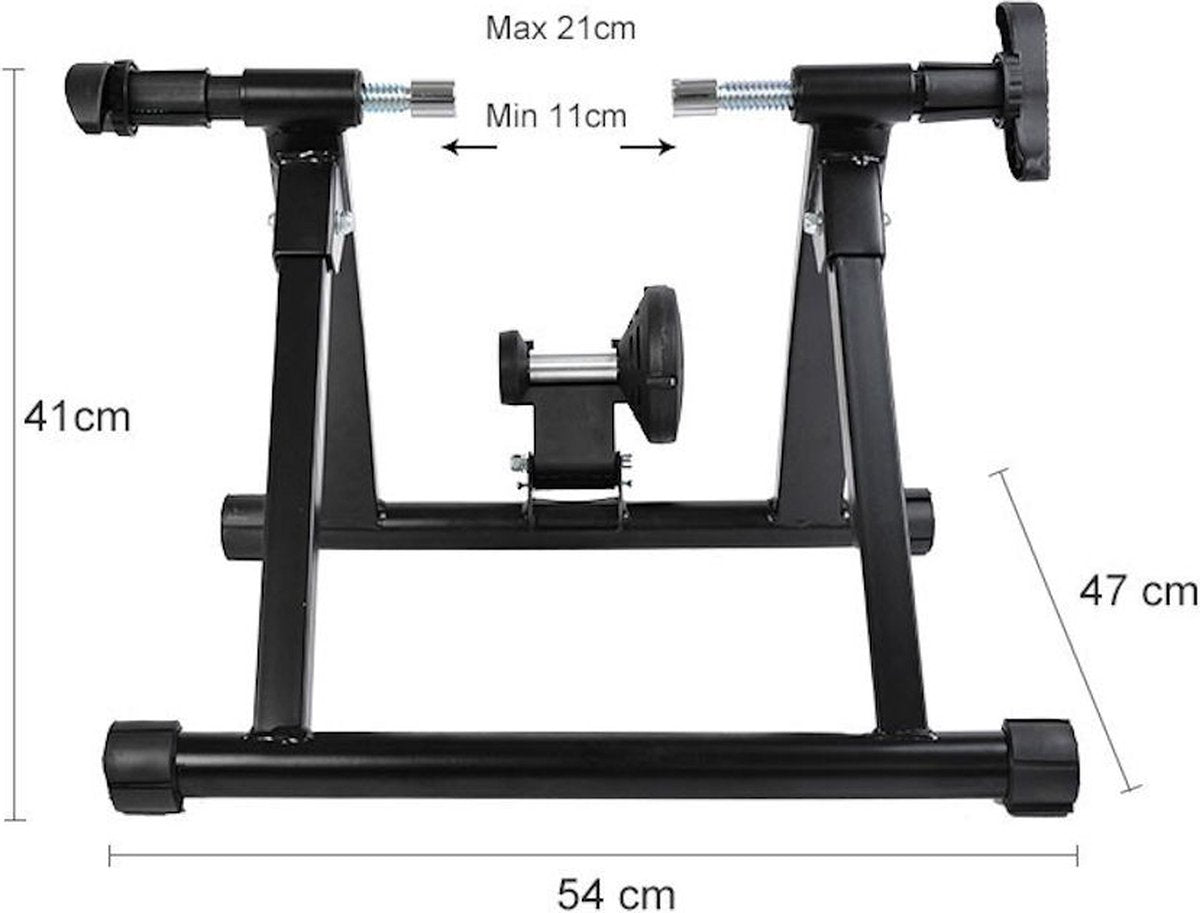 De fietstrainer kan worden opgevouwen, dus hij neemt niet veel ruimte in beslag. En dankzij het aluminium stalen materiaal is deze fietstrainer geschikt voor personen tot 135 kg.