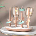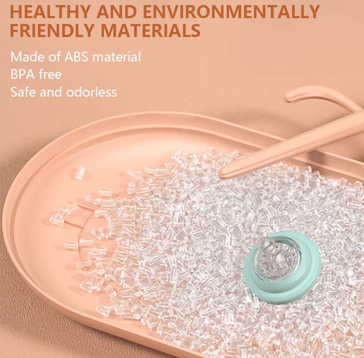Het Droogrek voor Babyflessen heeft een elegant, open ontwerp dat de lucht ongehinderd laat stromen, waardoor babyflessen en accessoires snel en hygiënisch drogen. Het helpt schimmel- en microbengroei te remmen, wat zorgt voor een veilige omgeving voor de spullen van je baby.