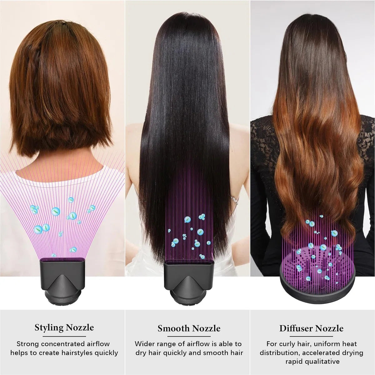 - 1 Diffuser en 2 Stylingmonden: De diffuser is ideaal voor volumineuze krullen en creëert een luchtige haardos, terwijl de stylingmonden de luchtstroom concentreren voor precieze styling en vormgeving.