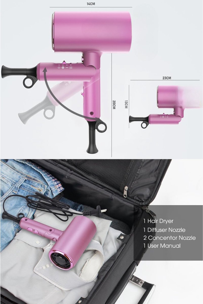 Deze reishaardroger combineert kracht met draagbaarheid en stijlvolle veelzijdigheid, waardoor het de perfecte keuze is voor iedereen die onderweg professionele haarverzorging niet wil missen.
