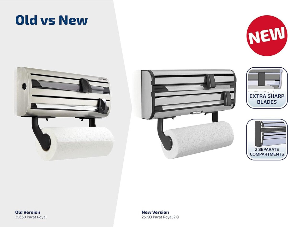 De Wandrolhouder Parat Royal 2.0 is de perfecte toevoeging aan elke keuken voor het efficiënt opbergen en snijden van folie. Bestel nu en geniet van het gemak en de stijl die het brengt in jouw keuken!