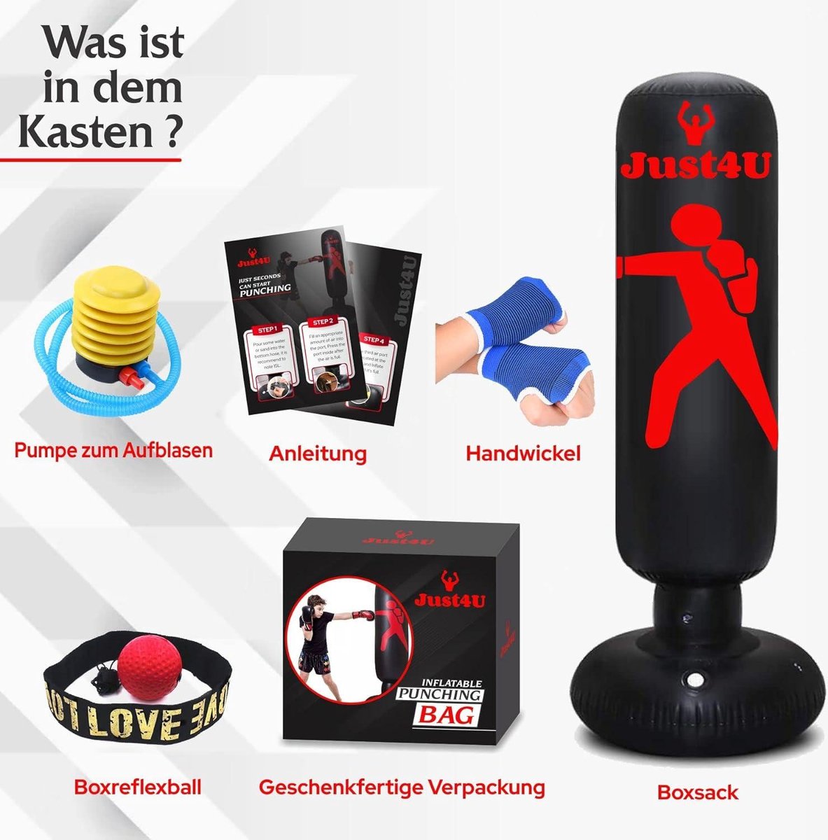 Free Standing Inflatable Punching Bag with Reflex Ball - Hand Wraps & Air Pump Included - Immediate Bounce Back - Indoor & Outdoor Martial Arts Practice music boxing machine