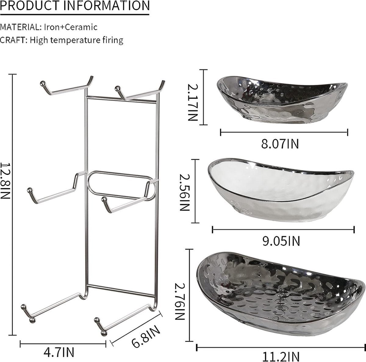 Elegant ontwerp: onze fruitschaal met schoonheid en functionaliteit, verfijnd design en elegante stijl, is niet alleen een fruit- en cake- en dessertbord, maar ook een elegante decoratie voor uw huis. In esthetisch design, onberispelijk voor eetkamer- of tafeldecoratie. Het kan ook een geweldig cadeau zijn, ideaal voor bruiloften, vrienden of een ander feest. Ruimtebesparend en veelzijdig: deze fruitschaal met 3 niveaus is 28,5 cm lang voor de grote schaal, 23 cm lang voor de middelgrote schaal en 20,5 cm lang voor de kleine schaal, en de metalen standaard meet 12 x 18 cm (L x H). Onze keramische fruitmand is compact van ontwerp en kan als fruithouder met fruit, groenten, suiker, snacks en kleine gadgets worden geplaatst. Prachtig ontworpen om veelzijdig te zijn voor elke eettafel, bruiloften, verjaardagsfeestjes, buffettraktaties, voedselpresentatietafels, babyborrels, afternoon tea. Stevig en duurzaam: elke serveerschaal is gemaakt van hoogwaardig keramiek met een gladde aanraking, de originele kleur van de materialen zal niet vervagen of roesten. De plank is gemaakt van metaal, licht en mooi. De randen van de serveerschaal zijn gemaakt van onregelmatige lijnen, rond en glad, zonder bramen. De antislipbal aan de onderkant van de plank is glad gepolijst, voorkomt schudden en beschadigt het werkblad niet.