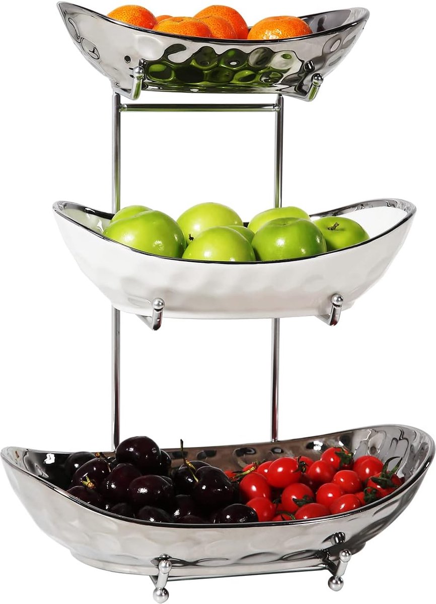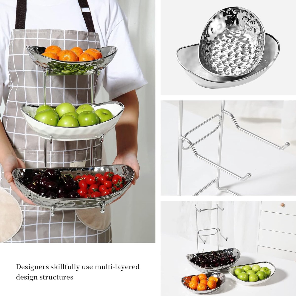Fruitschaal 3-laags keramische fruitmand voor keuken porseleinen keukenkommen voor fruit en groenten opslag snack noten dessert taart dienblad bordenrek voor feest bruiloft