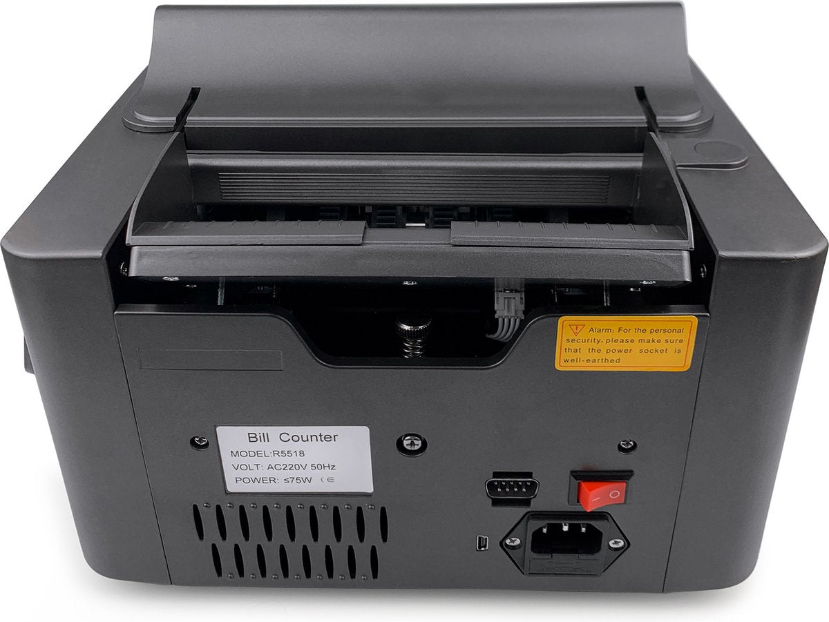 Door middel van zijn 5 verschillende soorten detectie (UV-detectie, Infrarood en Magnetisch, Metaaldraad en kleur ) ontkomt geen enkel vals biljet. Deze 5 functies zorgen ervoor dat u alleen de juiste biljetten telt en de valse er makkelijk uit plukt. Zodra een van deze functies een vals biljet detecteert, zal een alarm klinken en kunt u het gesignaleerde biljet als de laatste in de stacker verwijderen.