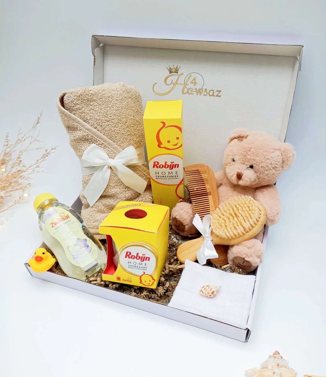 Wil je het pakketje nog leuker/ specialer maken? Dat kan door bijvoorbeeld de naam van het Kindje er op te laten borduren of graveren. Bij intresse stuur ons email naar info.hawsaz@gmail.com