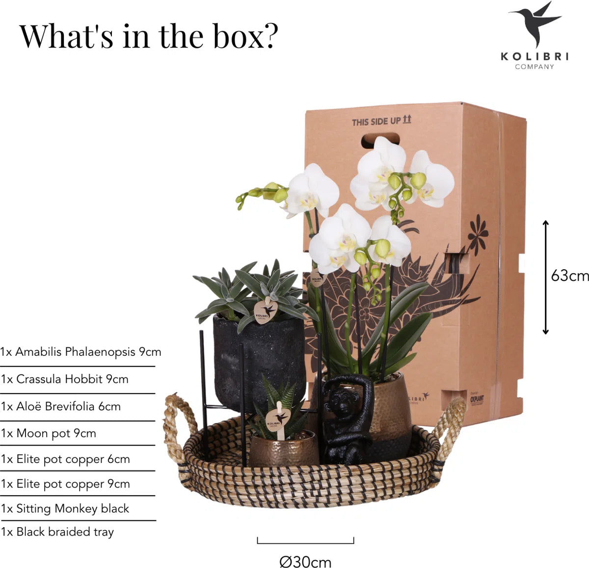 Gift set Home Hub | Plantenset met Phalaenopsis Orchidee en Succulenten incl. keramieken sierpotten