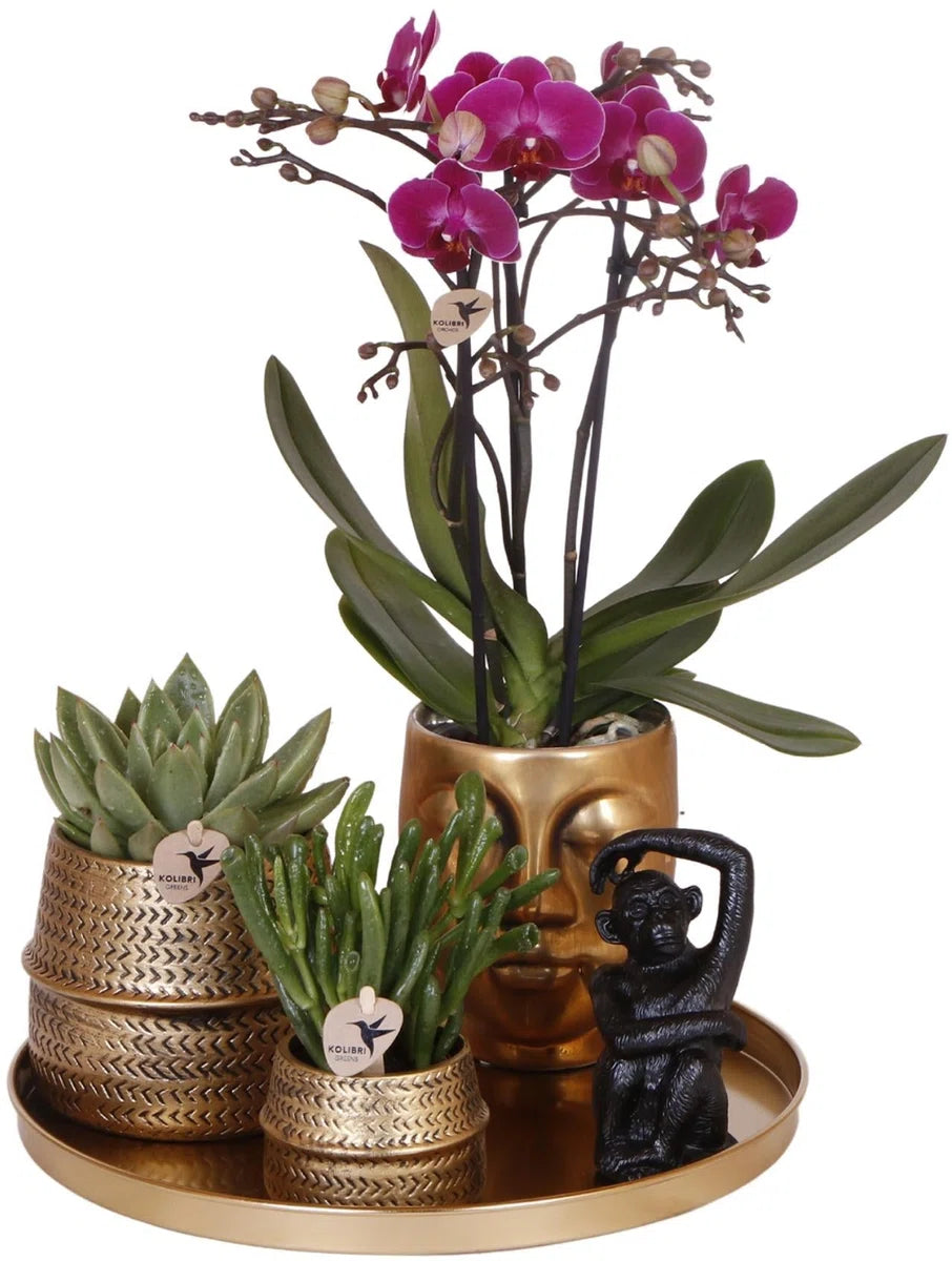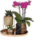 Gift set Hotel Chic | Plantenset met paarse Phalaenopsis Orchidee en Succulenten incl. keramieken sierpotten -