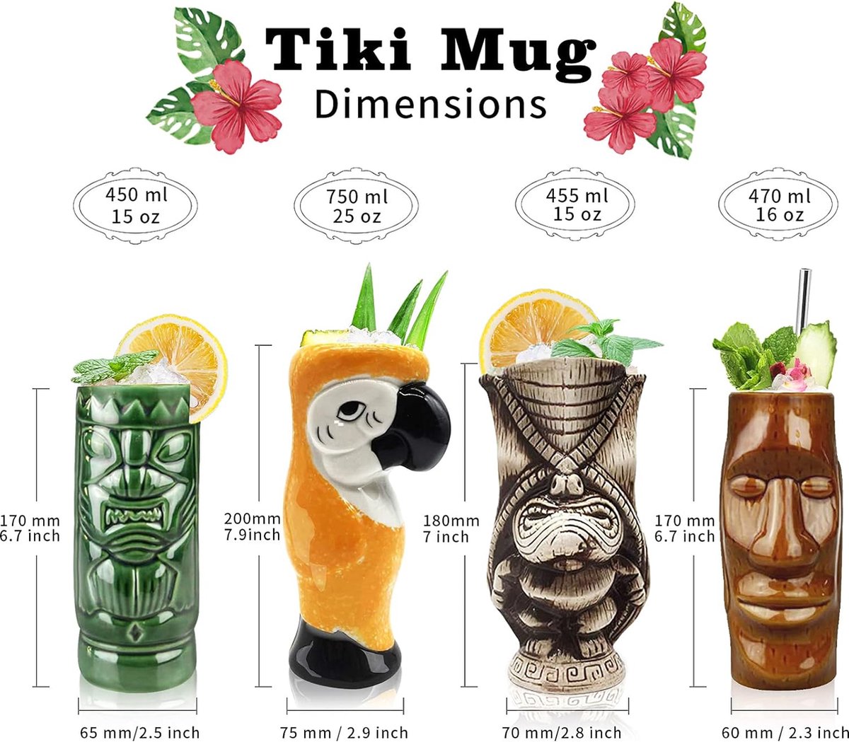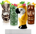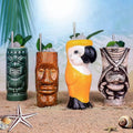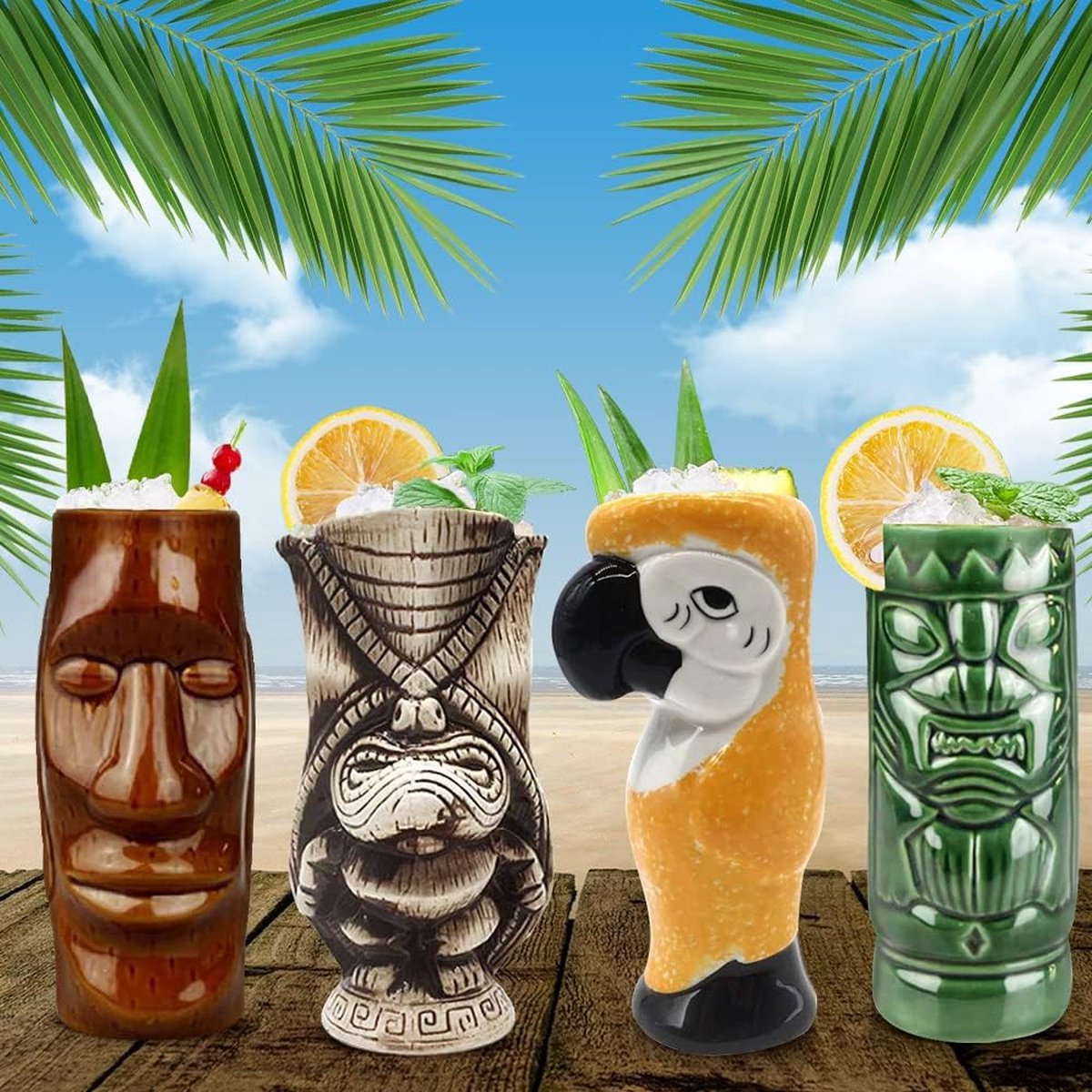Glazen voor cocktails, Tiki-mokken, set van 4 keramische mokken, tropische mokken, Hawaiiaans Tiki-feest, creatief cocktailglas, drankjes, grote bar drankjes, schattig bar servies, 4 pakjes cadeau, geel.