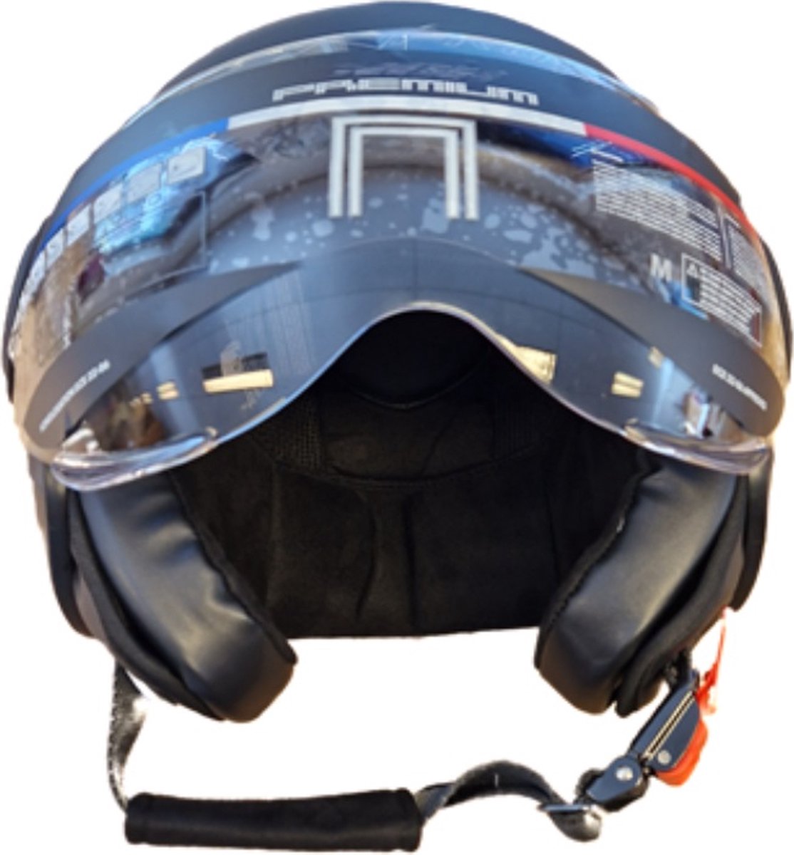 Onze helm is voorzien van een kort vizier die goed beschermd tegen wind en regen