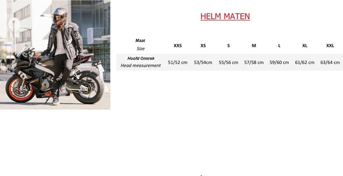 Onze helm is leverbaar in de maten XS tot en met XL (61 tot 62 cm)