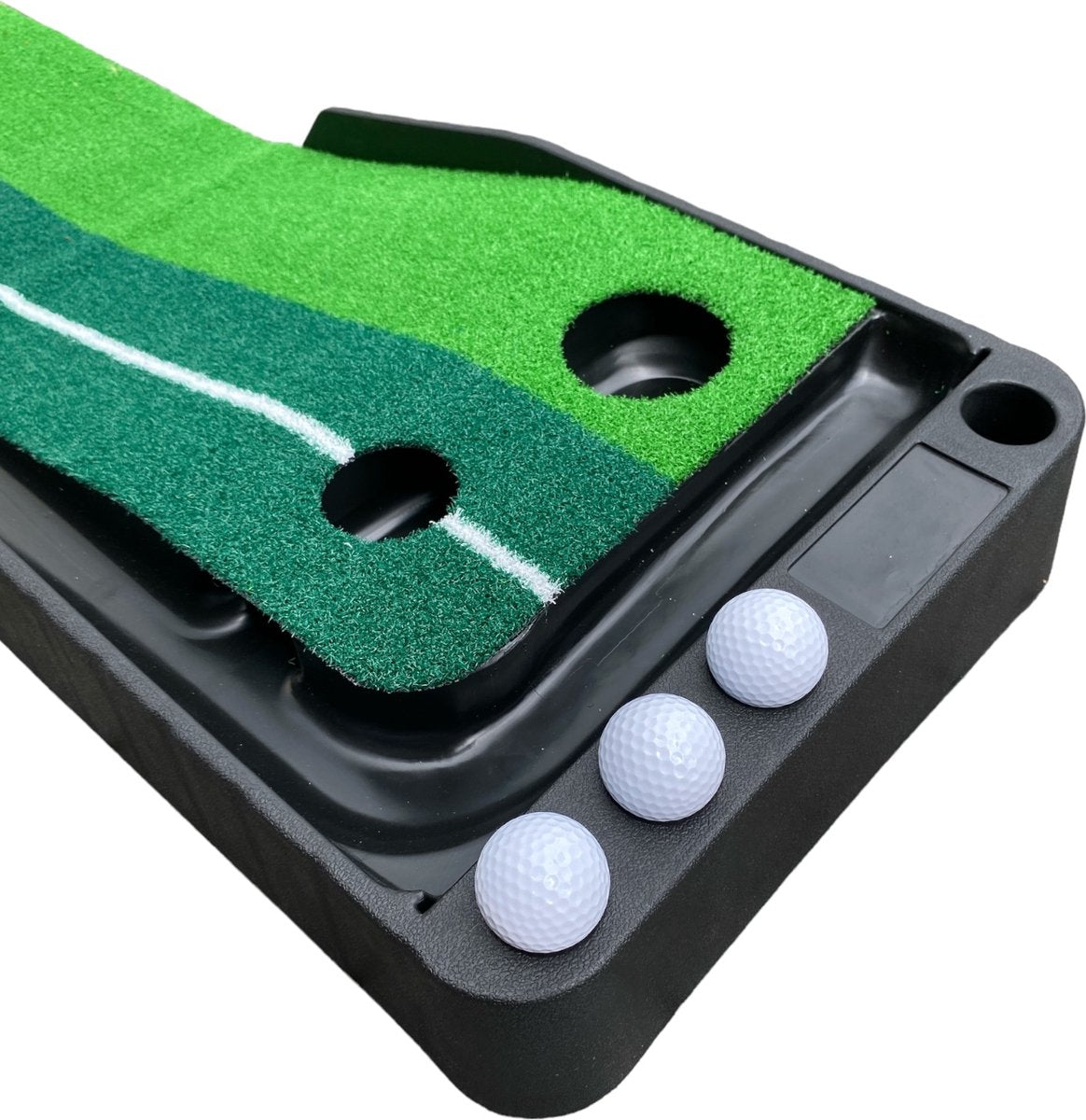 • Zelfterugkerende Golfballen: Dankzij het ingenieuze zelfterugkerende systeem komen de golfballen automatisch terug naar de putplek. Dit bespaart tijd en maakt het oefenen efficiënter, zodat je je volledig kunt concentreren op het verbeteren van je putting.