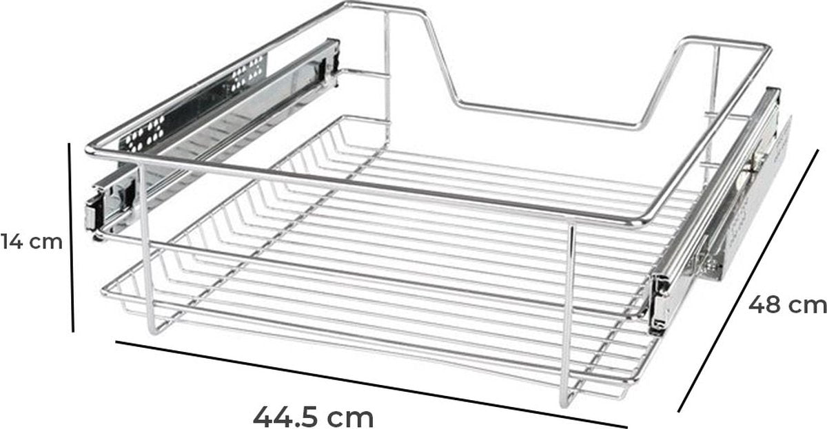 - Geschikt voor een kast met een breedte van ca. 50 cm, afmetingen inclusief rails (b x d x h): ca. 46,5 (± 5 mm) x 44 x 14 cm.