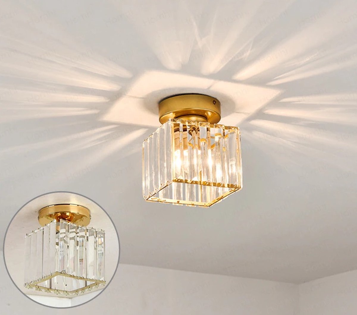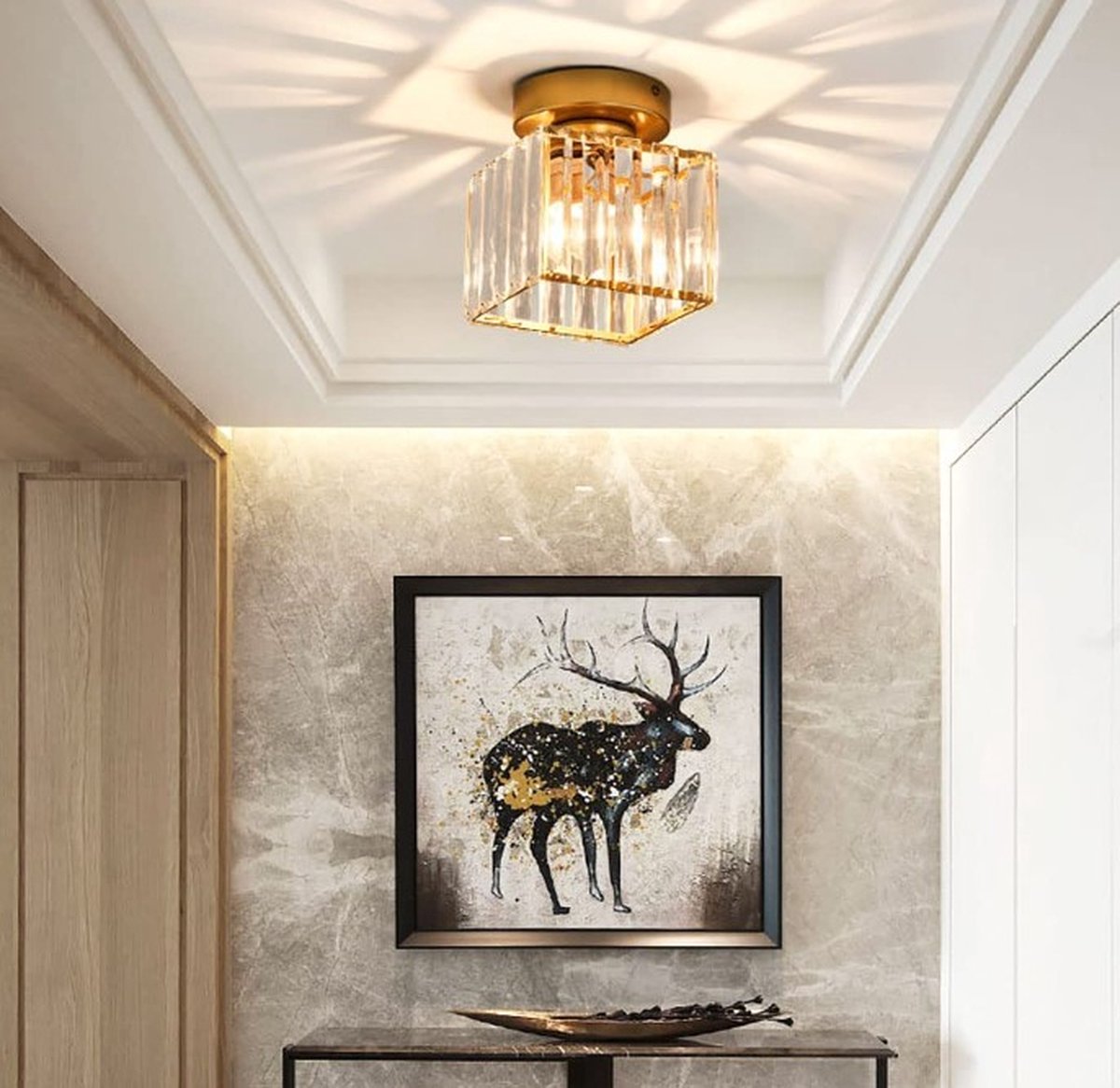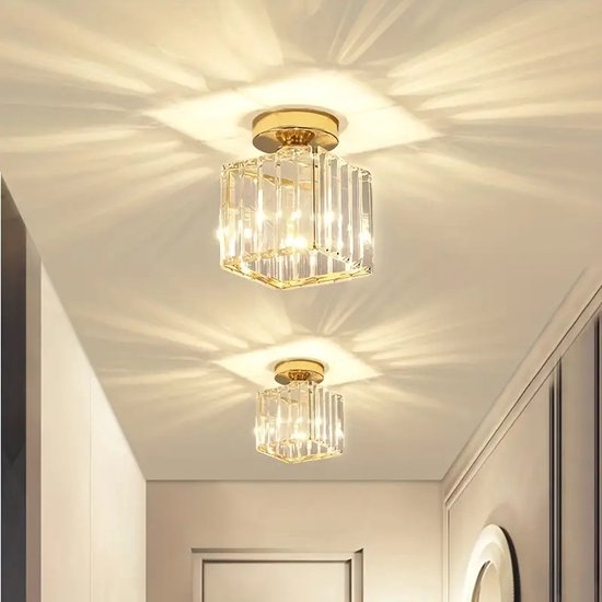 - 1. Mooi ontwerp: romantische luxe LED-kristallen plafondlamp, metalen kap met gouden vierkante afwerking, geschikt voor moderne decoratieve stijl binnenverlichting, is een uitstekende keuze voor uw huisverlichting.