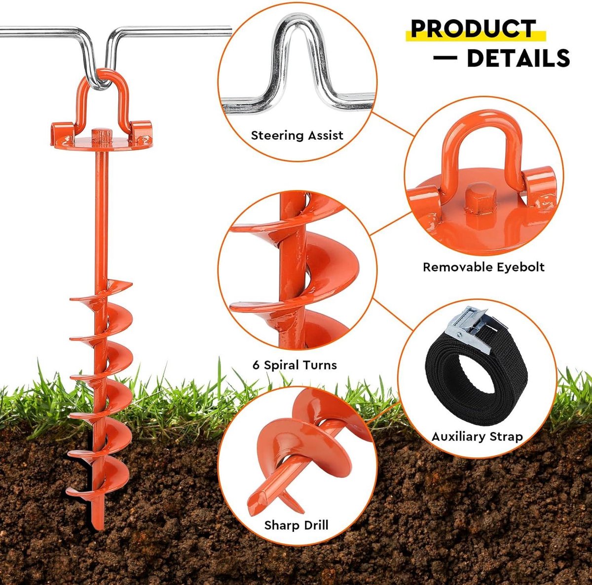 De schuurankers voor trampoline zijn gemaakt van hoogwaardig gelegeerd staal, waardoor ze uiterst stabiel en duurzaam zijn. Met een belastbaarheid van maximaal 220 lb en een robuuste spiraalvorm bieden ze maximale grip en veiligheid, zelfs bij sterke wind of harde regen.