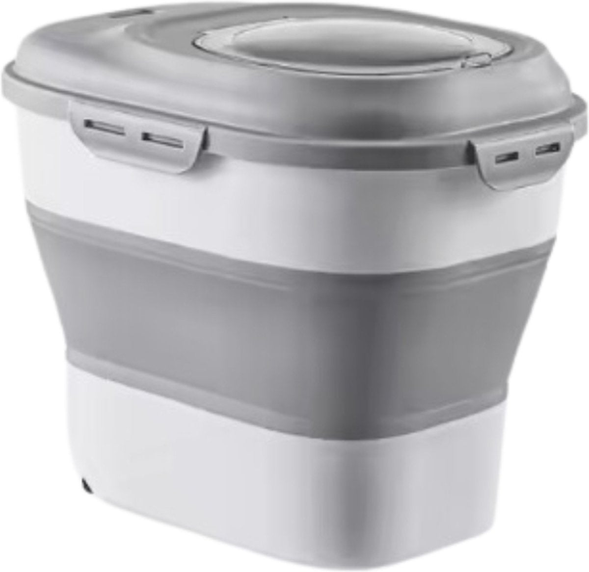 Voor gebruikers van kunststof voedsel containers: met schepje, wieltjes en uitklapbaar