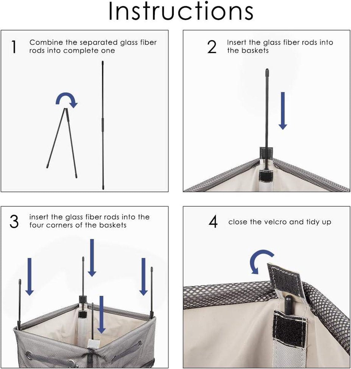 Deze wasmand is gemaakt van stevig en slijtvast materiaal met een waterdichte PVC-coating aan de binnenkant. De 4 opvouwbare vezelsteunstangen zorgen voor een stabiele constructie en maken snelle montage mogelijk. De 4 PP-universele wieltjes aan de onderkant zorgen ervoor dat de wasmand gemakkelijk door de ruimte kan worden gereden.