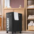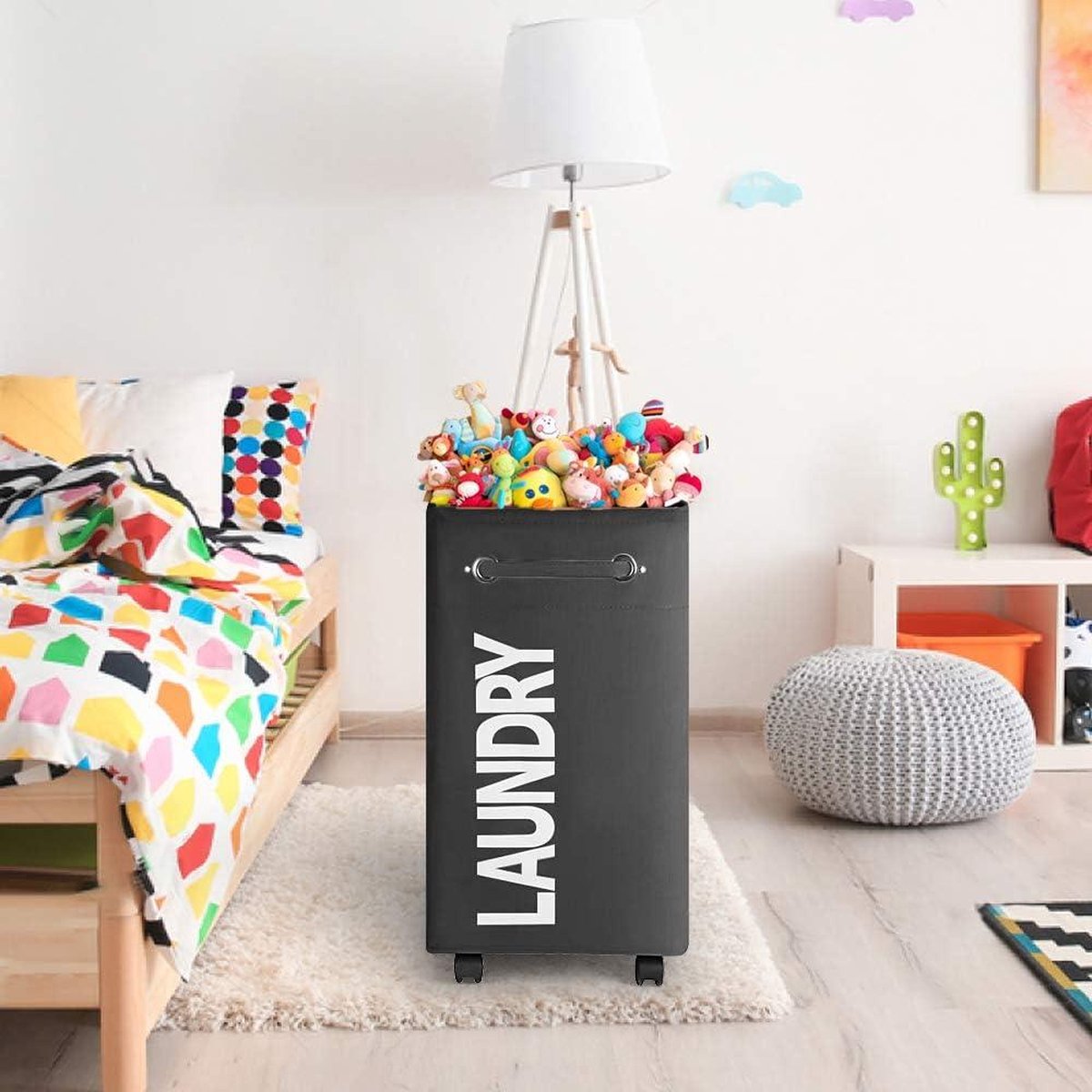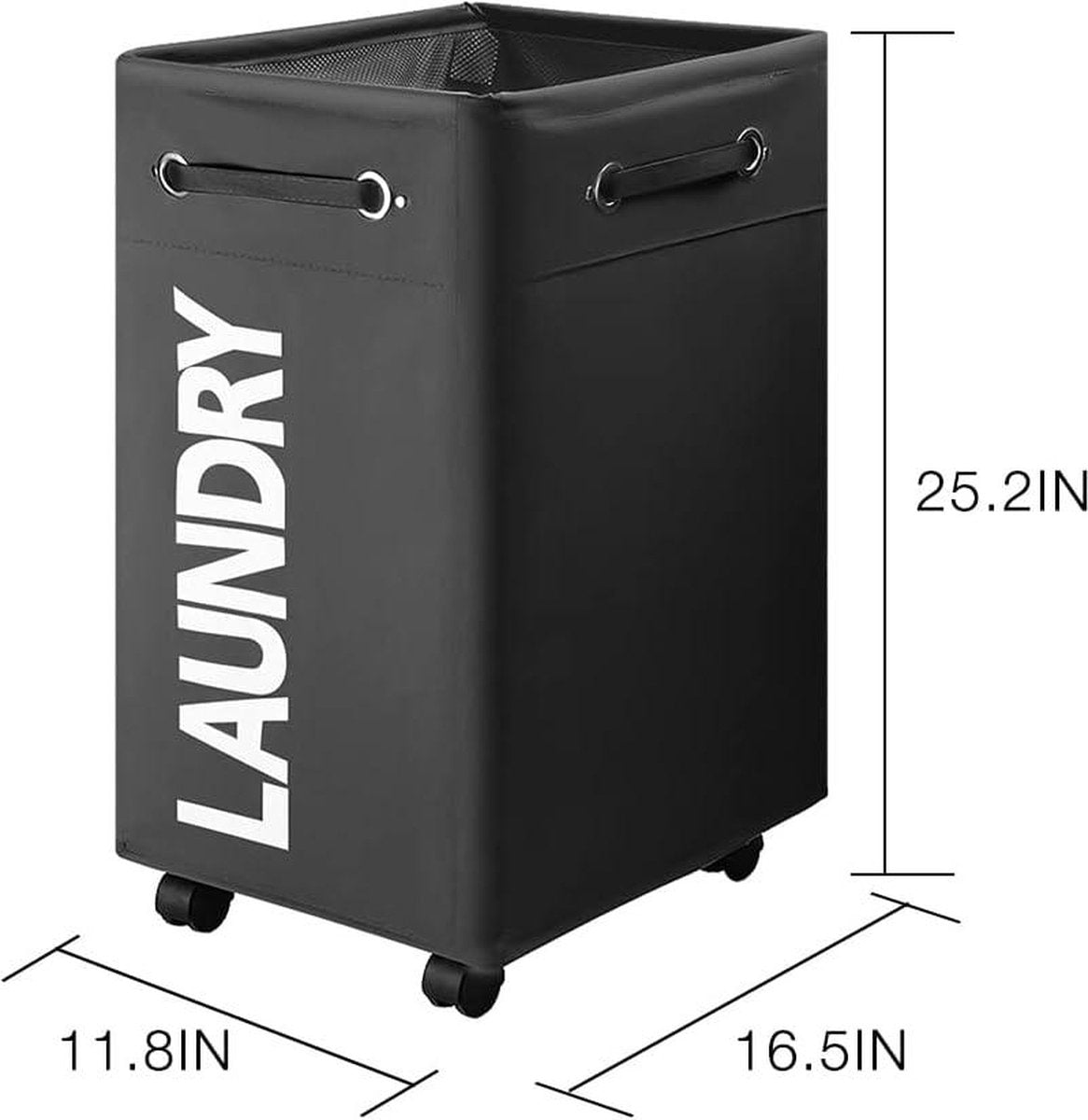 Grote Inklapbare Wasmand - 74L Opvouwbare Dunne Wasmand - Wielen en Handvat - Praktische Opbergbox - Zwart o2 Wasmand