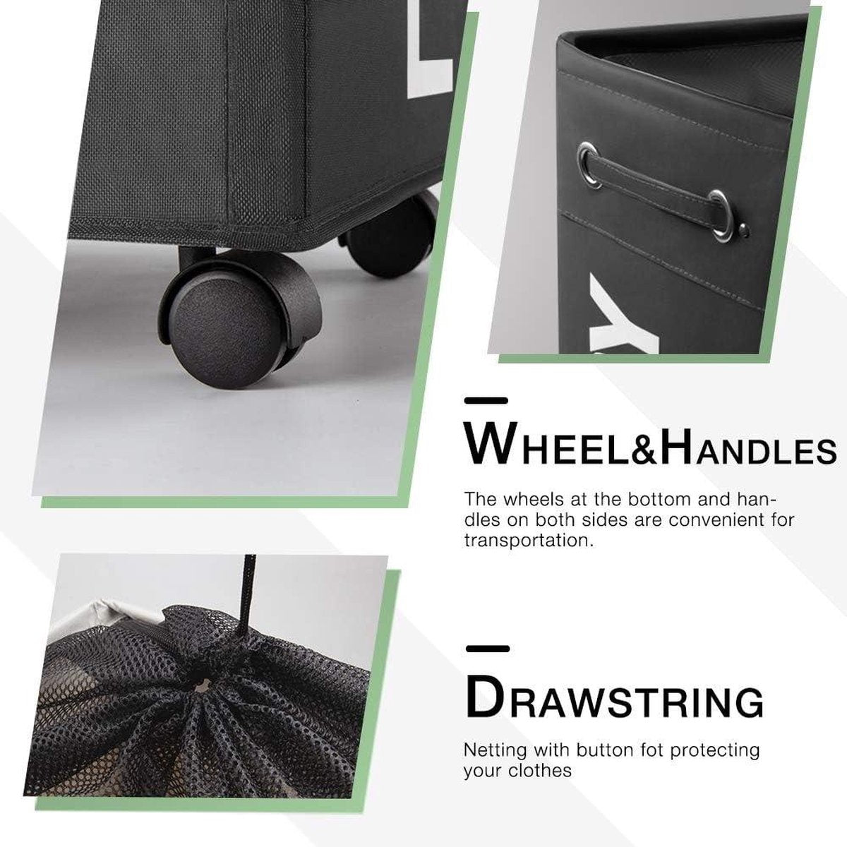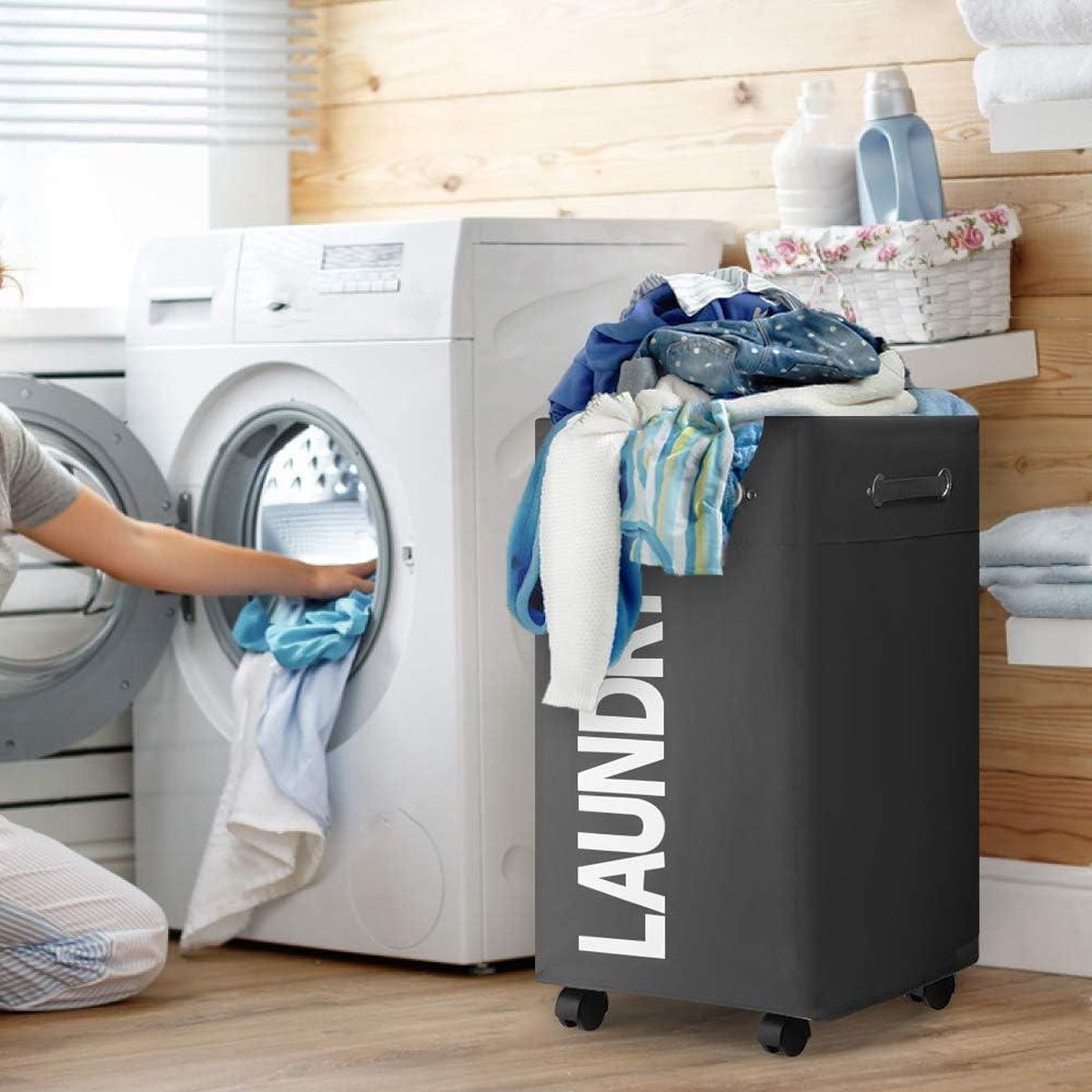 Verbeterde Listing Stevige Oxford Stoffen Wasmand met Wieltjes en Opvouwbare Waszakken