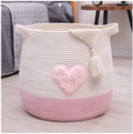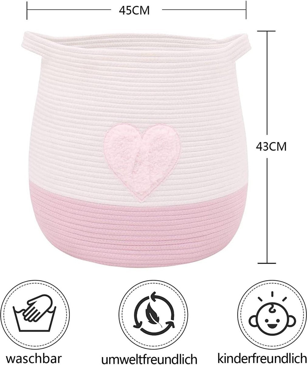 Grote katoenen touw geweven opbergmand - speelgoed organizer - was en dekens - ronde cadeaumand - kinderkamer - 45 x 43 cm - gepatenteerd product - roze rieten mand