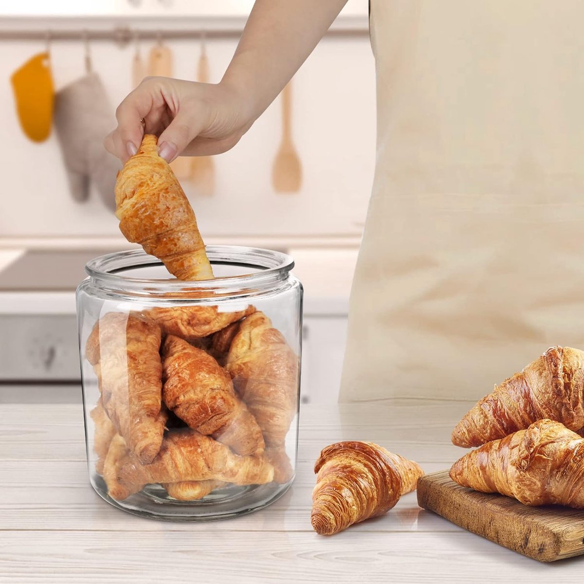 Grote capaciteit: Deze opbergpot heeft een capaciteit van 5800 ml, waarin een grote hoeveelheid koekjes, snoep, noten, jam of bloem kan worden bewaard. Goede afsluiting: opbergpotten met deksel en rubberen afdichting zorgen voor een lekvrije en luchtdichte afsluiting, waardoor uw voedsel droog en vers blijft. Stuur 15 bewaarzakken mee. Hoogwaardig materiaal: de opbergpot met deksel is gemaakt van voedselveilig en dik glas, dat duurzaam en BPA-vrij is. Dankzij de transparante opbergpotten kunt u het voedsel erin zien. Gemakkelijke toegang: De opbergpot heeft een brede opening en het deksel is gemakkelijk te openen, zodat u voedsel kunt verwijderen of vullen zoals gewenst.
