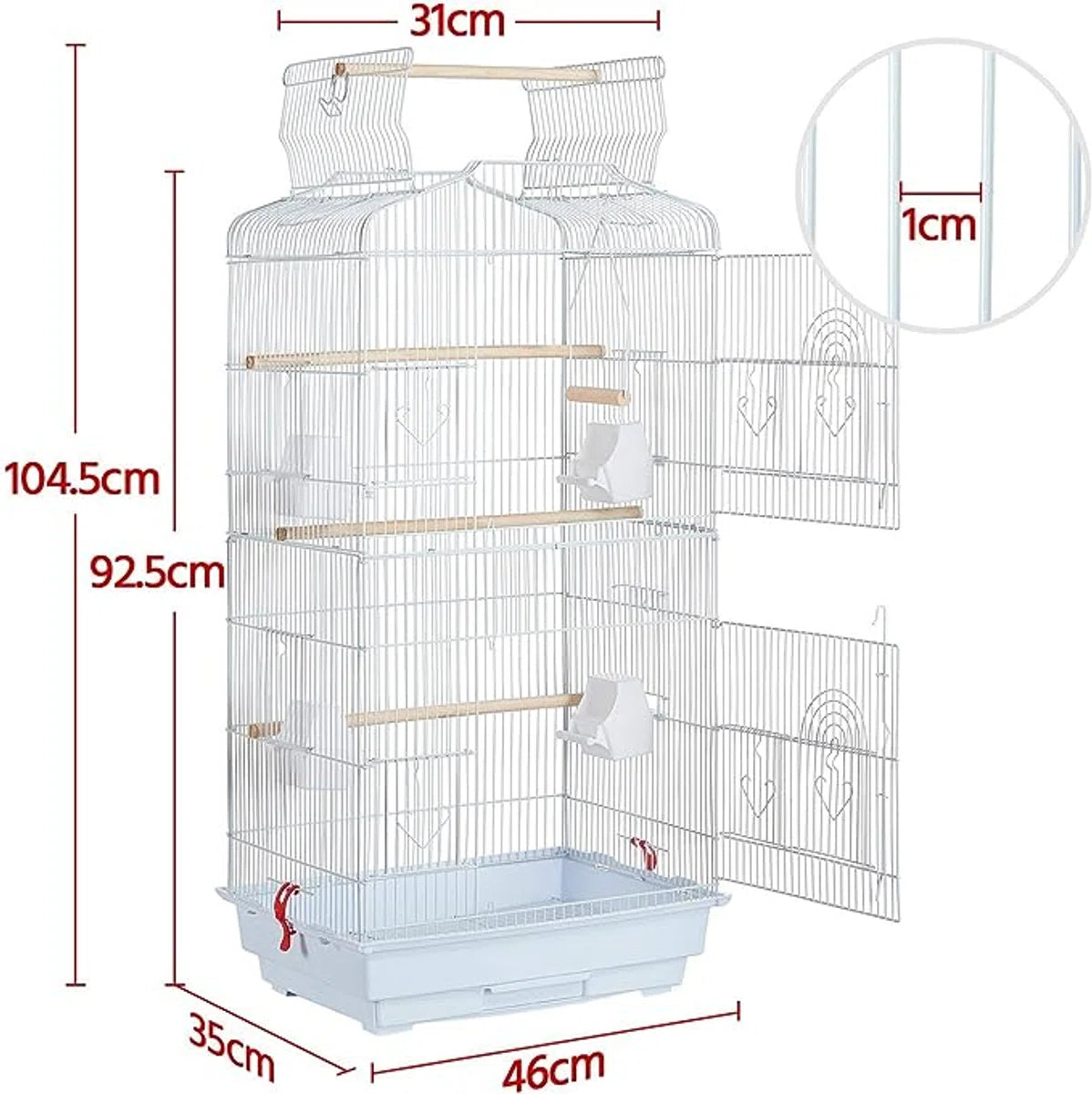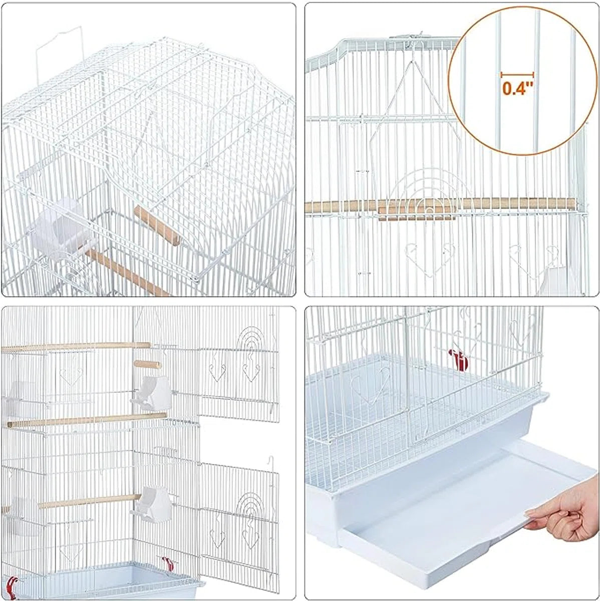 Geschikt voor diverse vogels: De vogelkooi is ideaal voor kanaries, valkparkieten, papegaaien, duiven en vinken, waardoor het een veelzijdige keuze is voor verschillende soorten vogels.