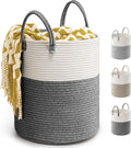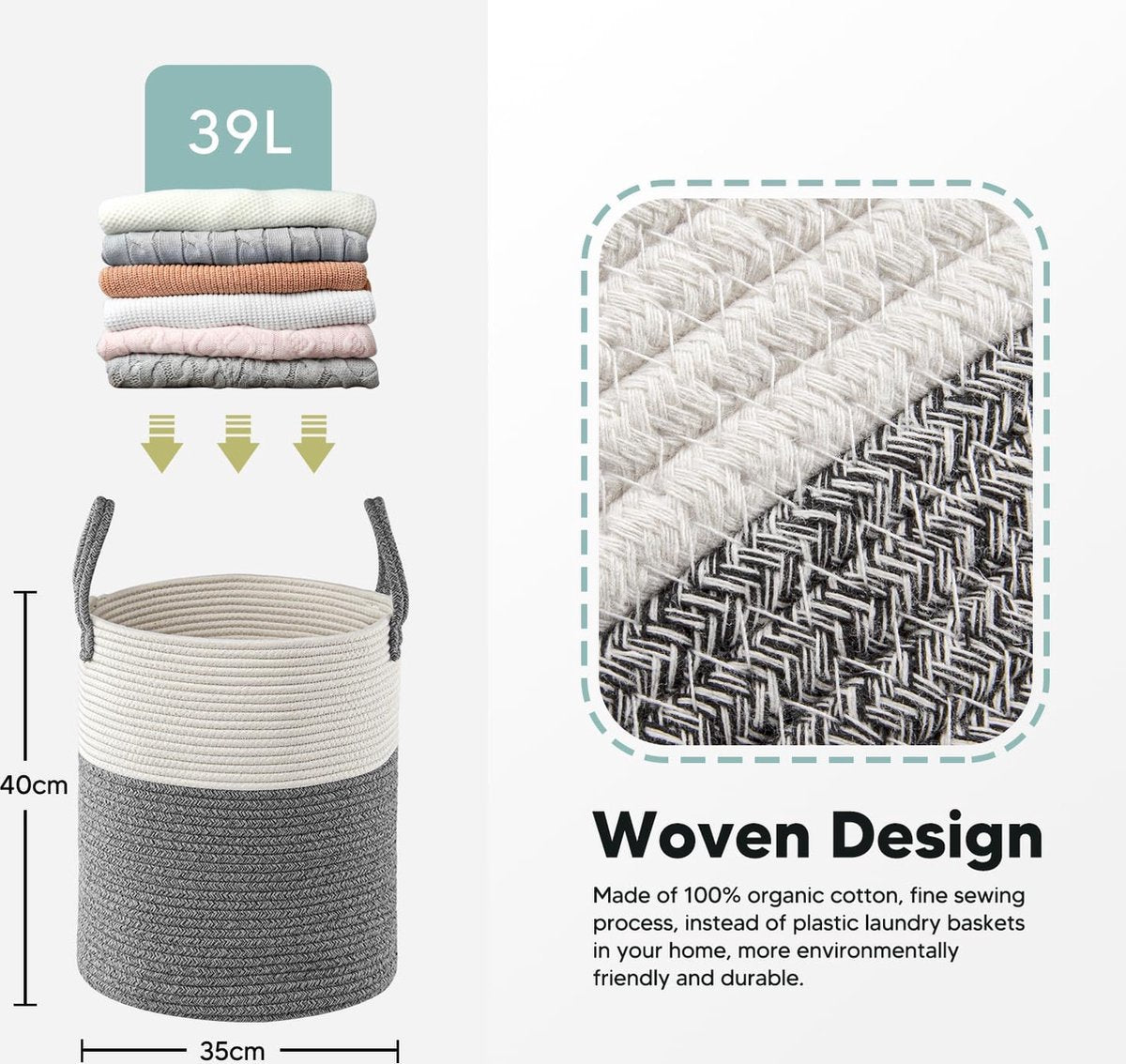 Grote Wasmand Katoenen Touw 39L Deken Opbergmand D35 x H40 CM Geweven Wasmand met Handgreep Opbergmand Gevlochten Opvouwbare Wasmand voor Thuisopslag en Decoratie (Donkergrijs)