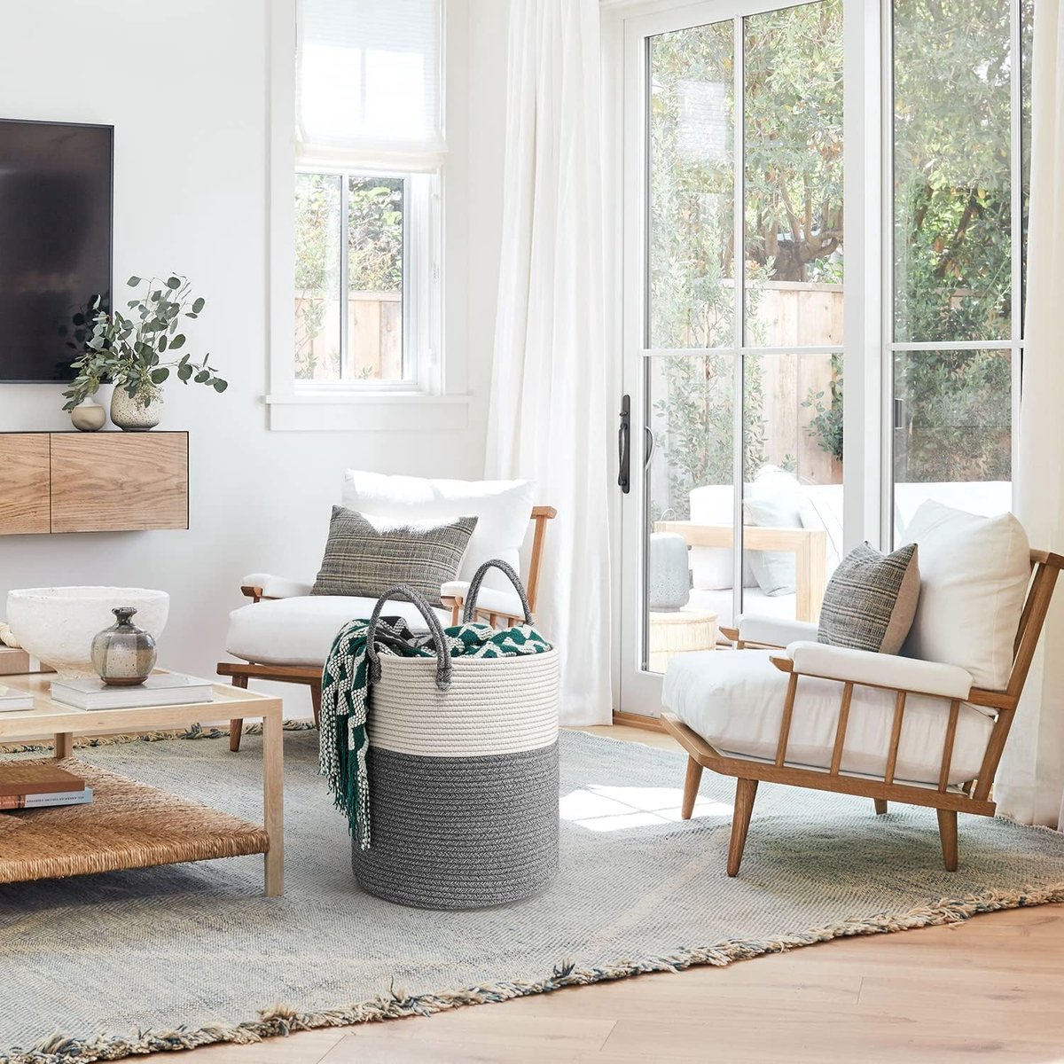 - Katoenen Touw Opbergmand: Het colour-blocked design kan gemakkelijk in je interieur worden verwerkt, en met zijn uiterlijk en functionaliteit is het perfect als kerstcadeau of housewarming cadeau.