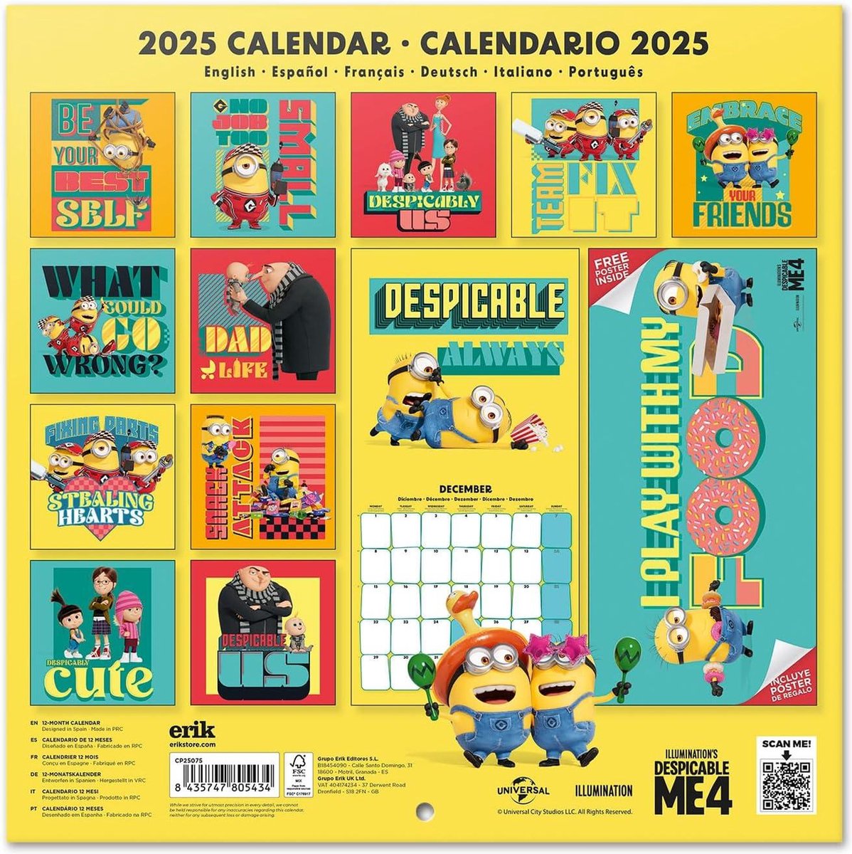 Gru My Favorite Villains 2025 Kalender 4-Broschürenkalender 30x30 cm-Fsc Gecertificeerde Wandkalender kalender 2025 maandkalender