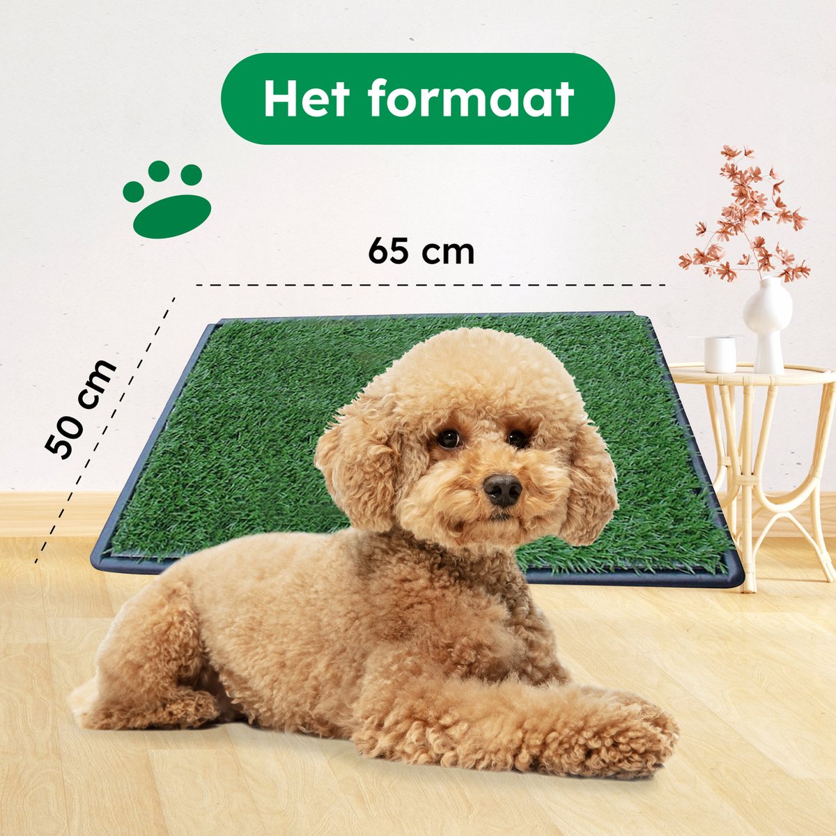 Omdat uw hond altijd zijn behoefte moet kunnen doen hebben wij een extra grasmat bij het product gevoegd. Dit betekent als de ene grasmat vies is. Kunt u hem vervangen met de schone grasmat. Ondertussen heeft u genoeg tijd om de andere grasmat schoon te maken. Zo kan uw hond altijd zijn behoefte doen en heeft u genoeg tijd om de grasmat schoon te maken.