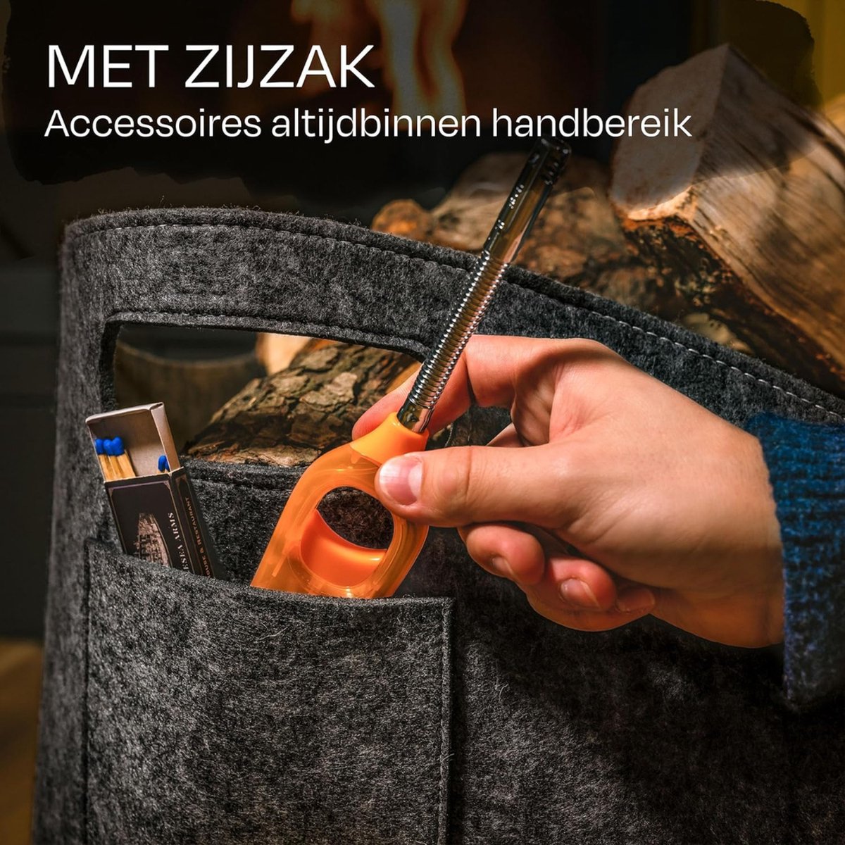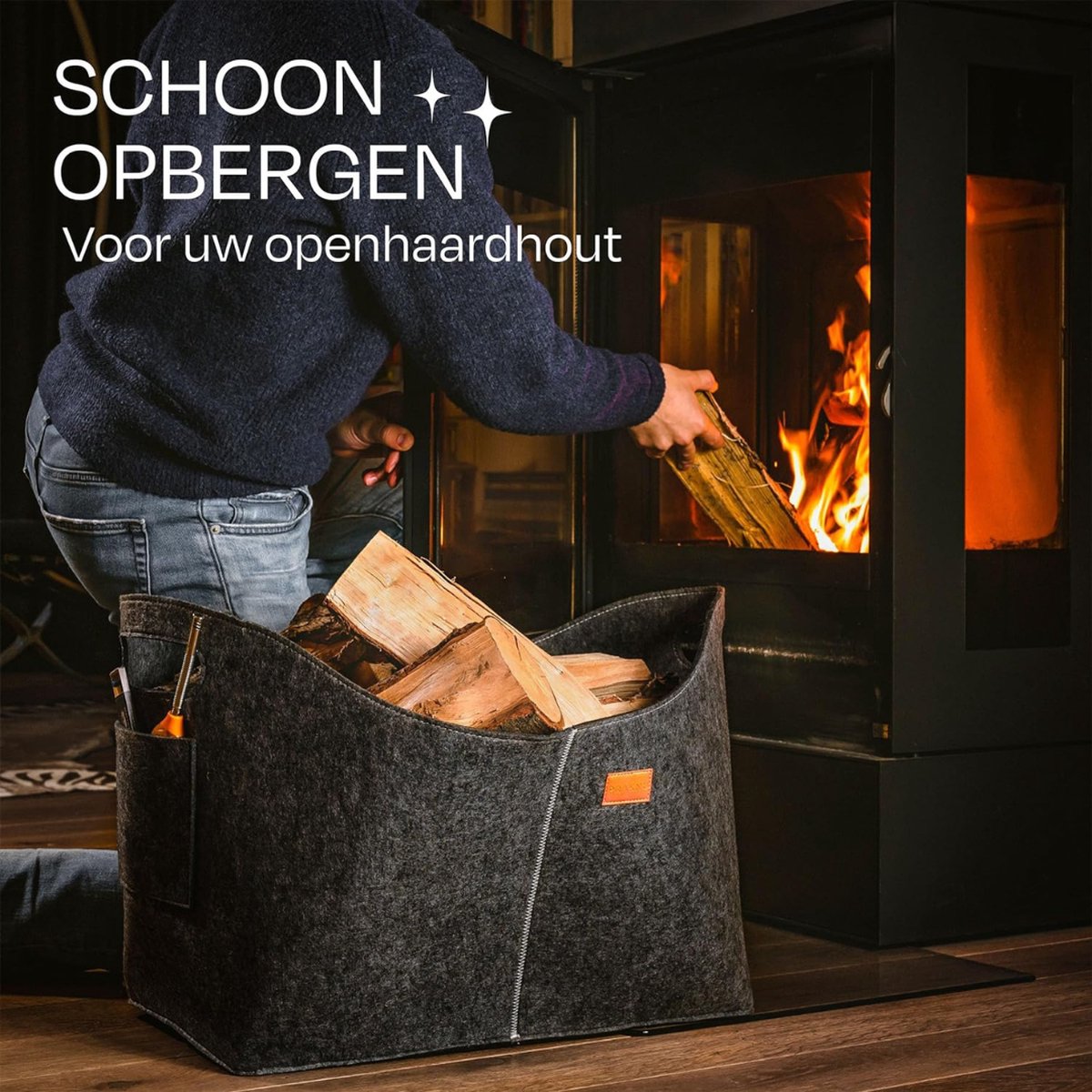 Brandhout van de stapel naar je open haard transporteren kan een uitdaging zijn. Vraag je je af hoe je je brandhout op een nette manier kunt organiseren zonder concessies te doen aan stijl? Maak kennis met de Brandhoutmand. Deze ruime en duurzame vuurhoutzak is vervaardigd uit gerecyclede vilt met versterkte naden en stevige handvatten, waardoor het de perfecte oplossing is voor het opslaan en dragen van brandhout en meer met gemak. Verrijk je openhaardervaring met deze robuuste en veelzijdige houten mand die functionaliteit en esthetiek moeiteloos combineert.