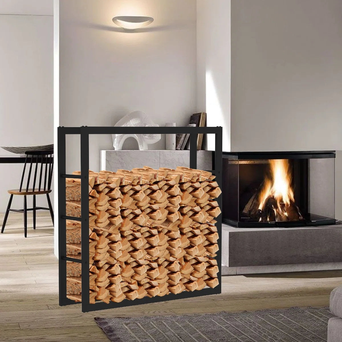 De houtopslag is gemaakt van staal met een matzwarte coating. U bent van jaren lang plezier verzekerd.
