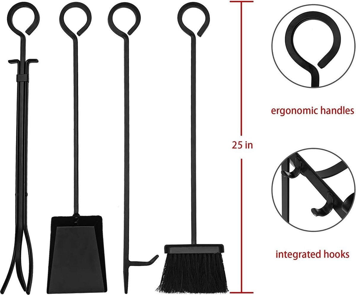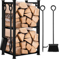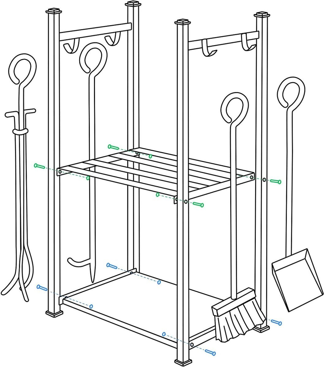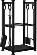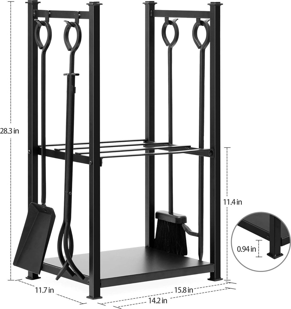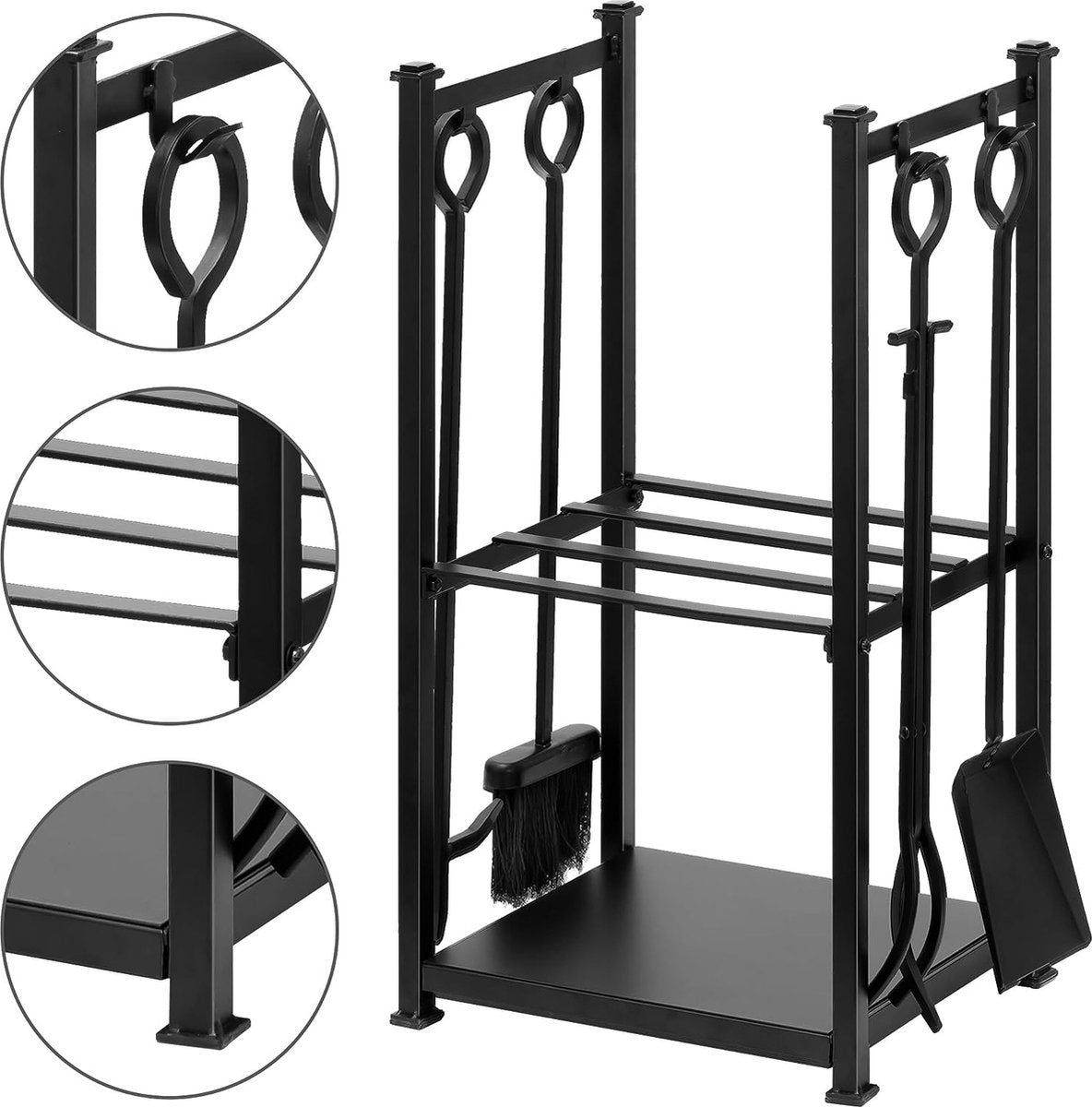 Solide & duurzaam: professionele begeleidingsset voor brandhoutrek van smeedijzer en verdikt vierkant buisframe om een sterkere houtopslag voor houtbrander te garanderen, 14,2 inch x 11,7 inch vierkante basis om je brandhout op te bergen. De 0,94 inch verhoogde basis boven de grond maakt windstroom mogelijk om het hout droog te houden. Grote capaciteit: het brandhoutrek meet 72 cm x 46 cm x 30 cm (h x l x b), met dubbellaags houten opbergrek van 36 cm x 30 cm, perfect formaat om voldoende brandhoutstapels voor hout binnen of buiten te houden. En het basis-opbergrek is perfect voor dubbele opslag van aanmaakhout, aanmaakblokjes enz. Binnen en buiten: stabiele schoorsteenset met smeedijzeren materiaalframe en zwart poedercoating-design, duurzaam en roestvrij voor binnen en buiten opslag, kan goed worden uitgerust met een bundel brandhout. De set brandhout houdt je brandhout en gereedschap op een praktische, mooie plek. Multifunctioneel: praktisch haardhoutrek voor binnen en buiten met gereedschap voor haardaccessoires. Het bovenste houten rek is geschikt voor het bewaren van gehakte houten stokjes. En het basis-opbergrek is perfect voor het bewaren van aanmaakhout, aanmaakhout, enz. De vier open haardgereedschappen: tang, pookhaak, bezem en schep. Uitgebreid haardgereedschap voor je kachel.